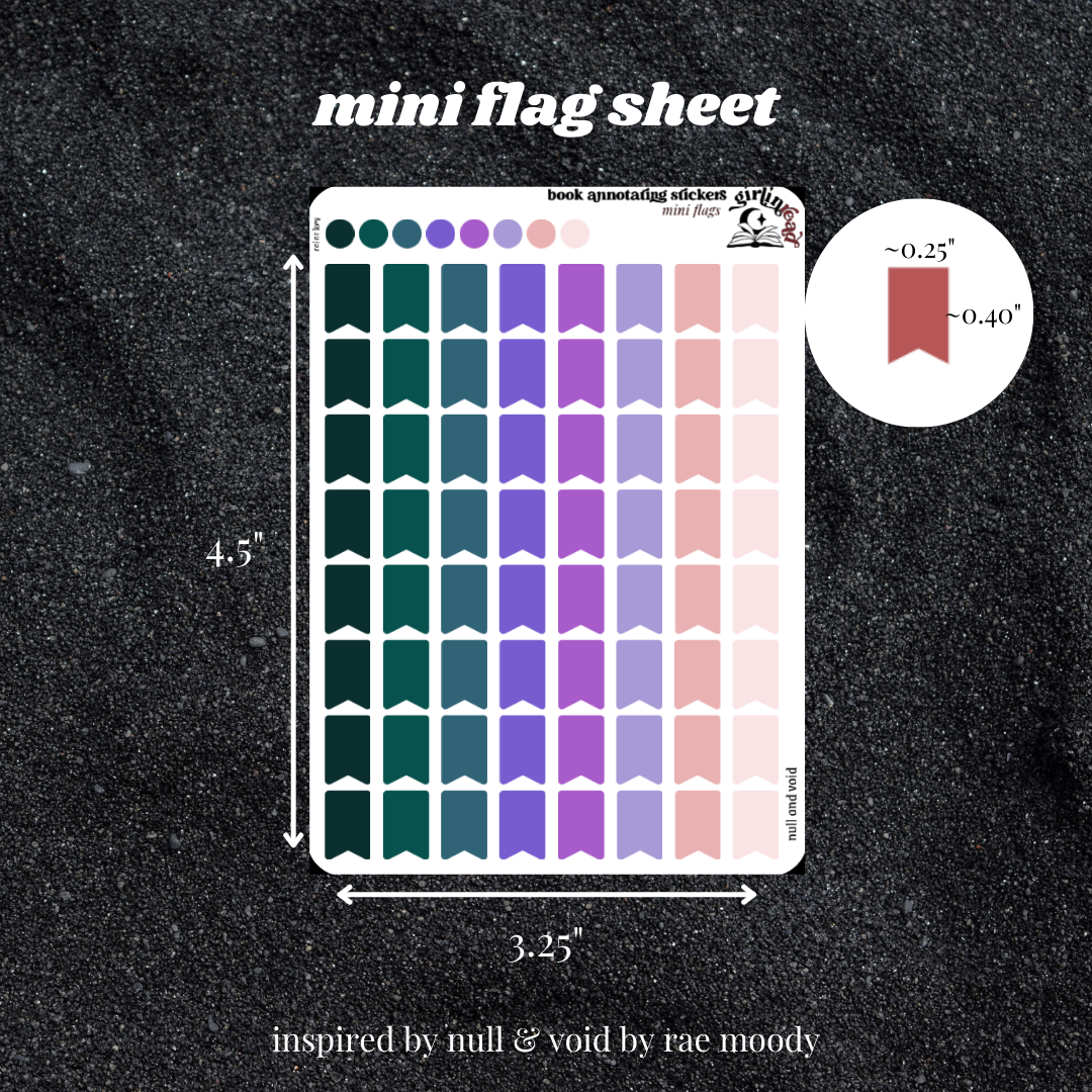 book annotating tabs in the color palette inspired by the book cover for null & void! can be placed in the book you're annotating, your planner, your journal, your reading log, etc.!