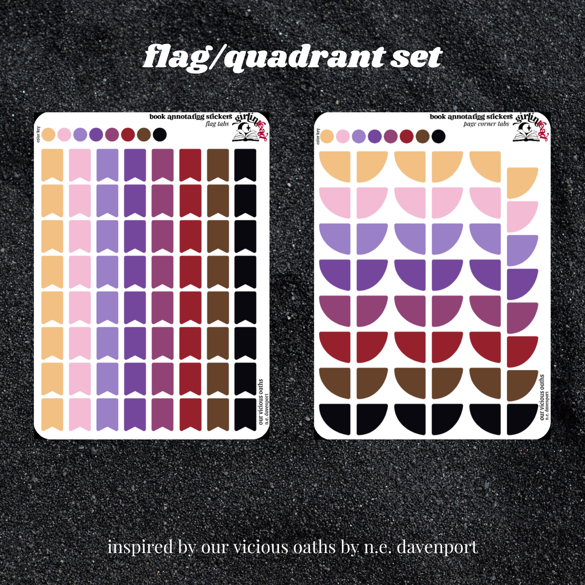 book annotating tabs in the color palette inspired by the book cover for our vicious oaths! can be placed in the book you're annotating, your planner, your journal, your reading log, etc.!