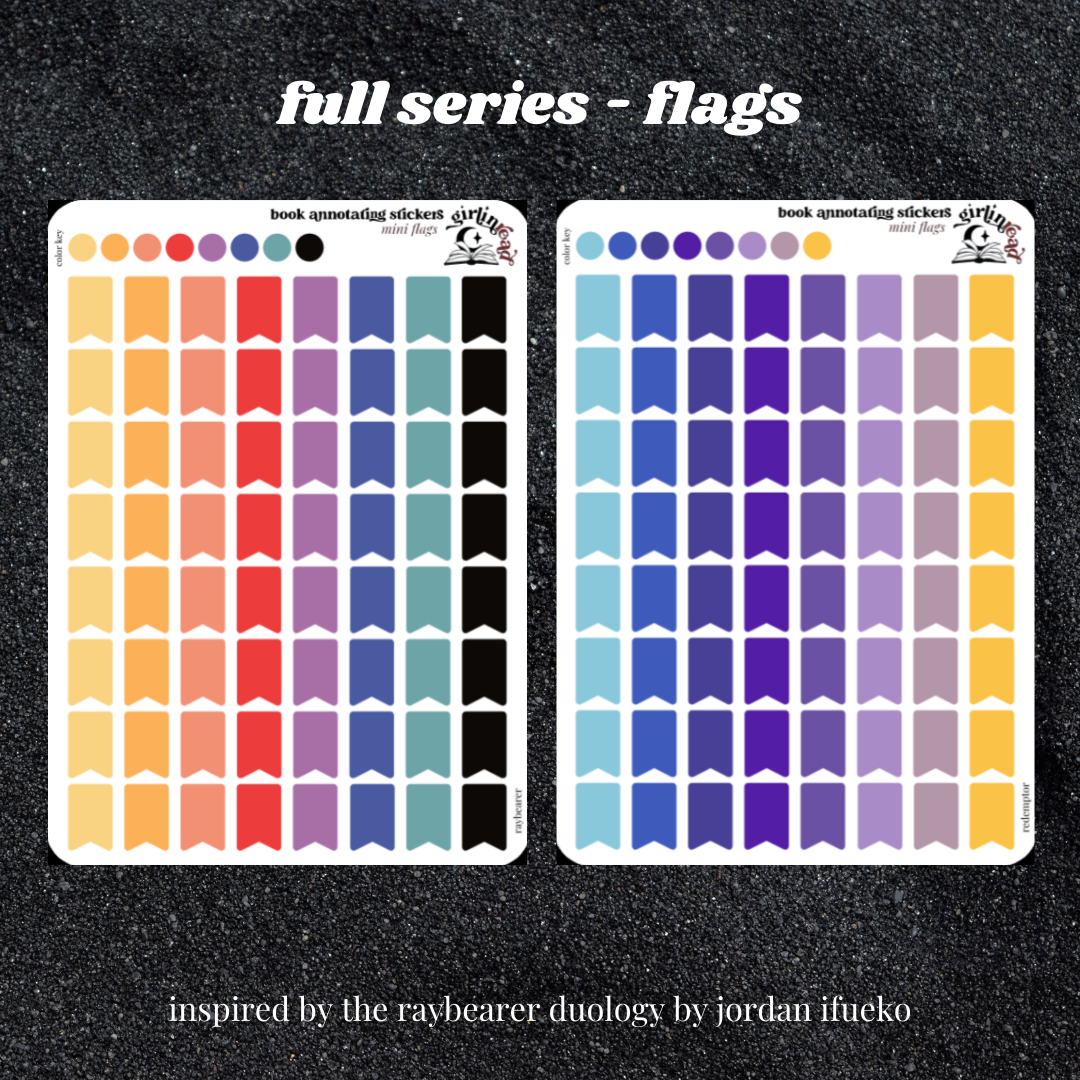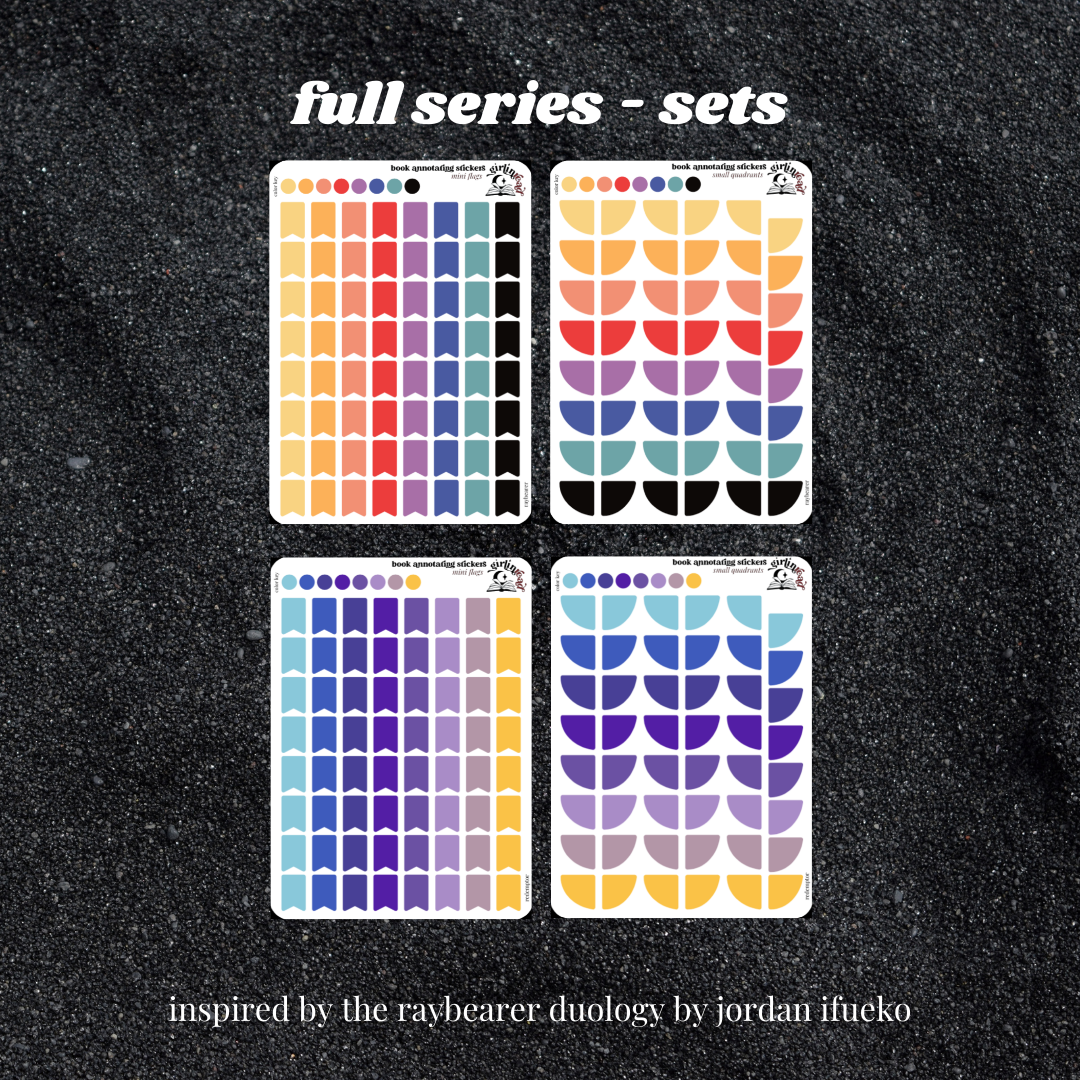 get everything you need to annotate the books in the raybearer duology in the color palettes inspired by each book cover! can be placed in the book you're annotating, your planner, your journal, your reading log, etc.!