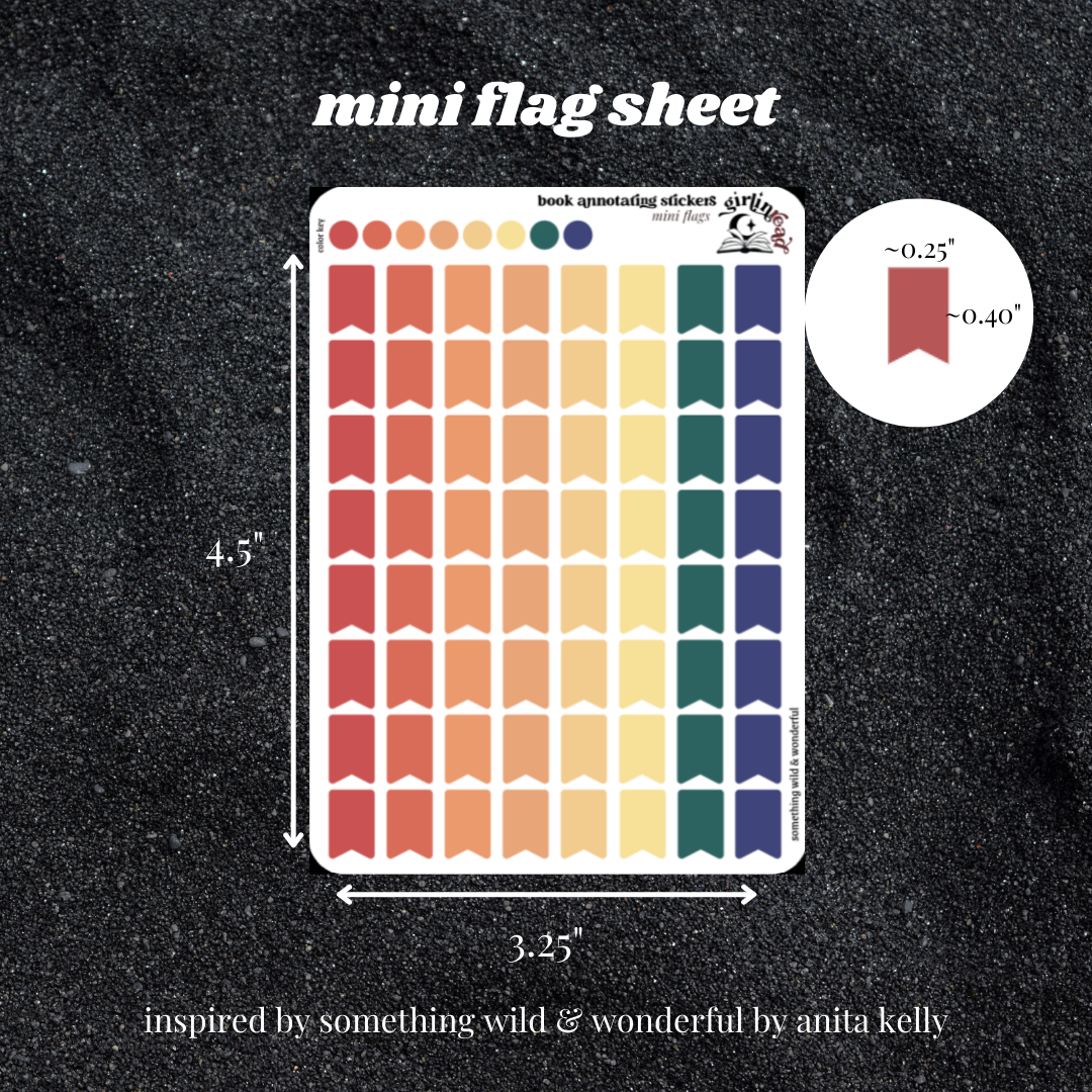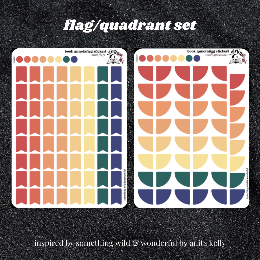 book annotating tabs in the color palette inspired by the book cover for something wild & wonderful! can be placed in the book you're annotating, your planner, your journal, your reading log, etc.!