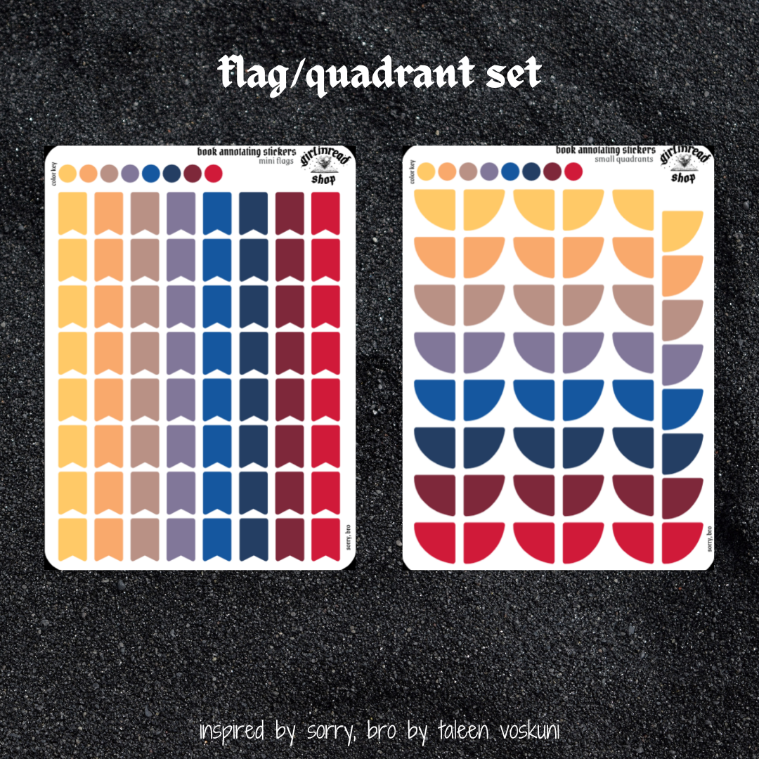 book annotating tabs in the color palette inspired by the book cover for sorry, bro! can be placed in the book you're annotating, your planner, your journal, your reading log, etc.!
