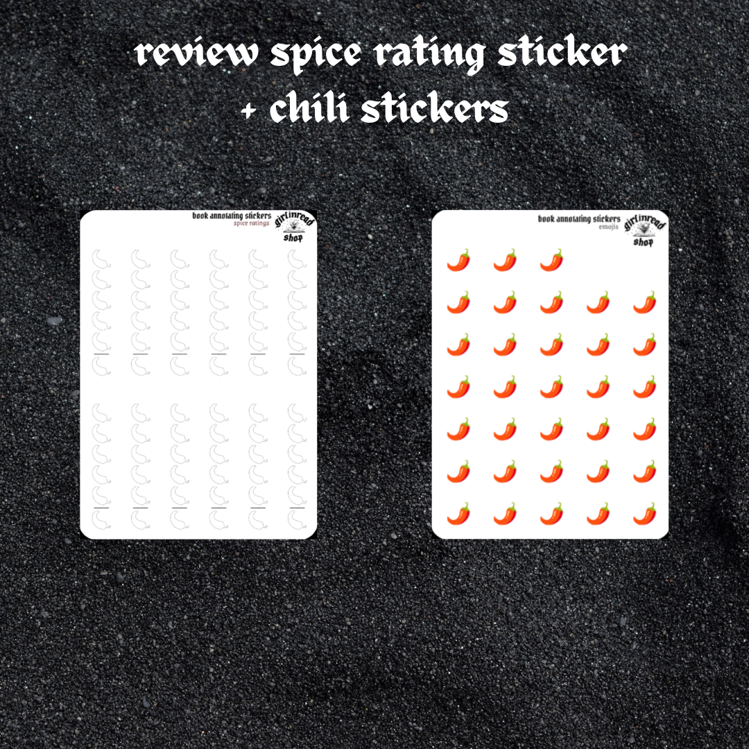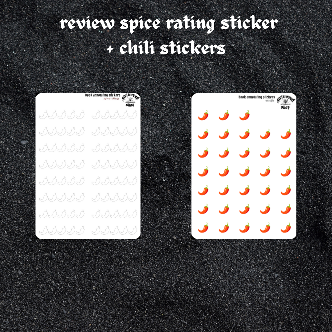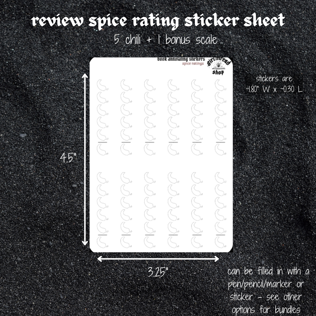mini stickers for recording your spice rating for your books. chilis can be filled in with pens, markers, or chili stickers stickers (see options for bundles).