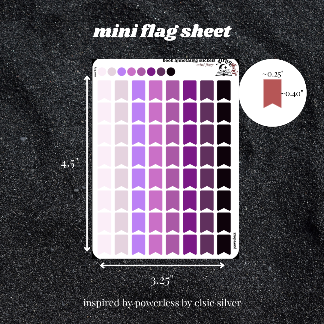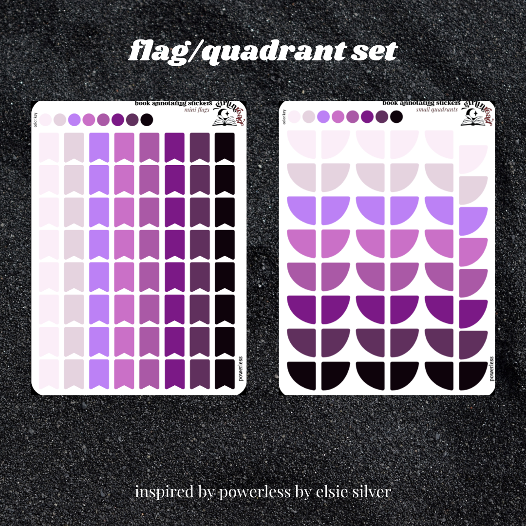 book annotating tabs in the color palette inspired by the book covers for the chestnut springs series (flawless, heartless, hopeless, powerless, reckless)! can be placed in the book you're annotating, your planner, your journal, your reading log, etc.!