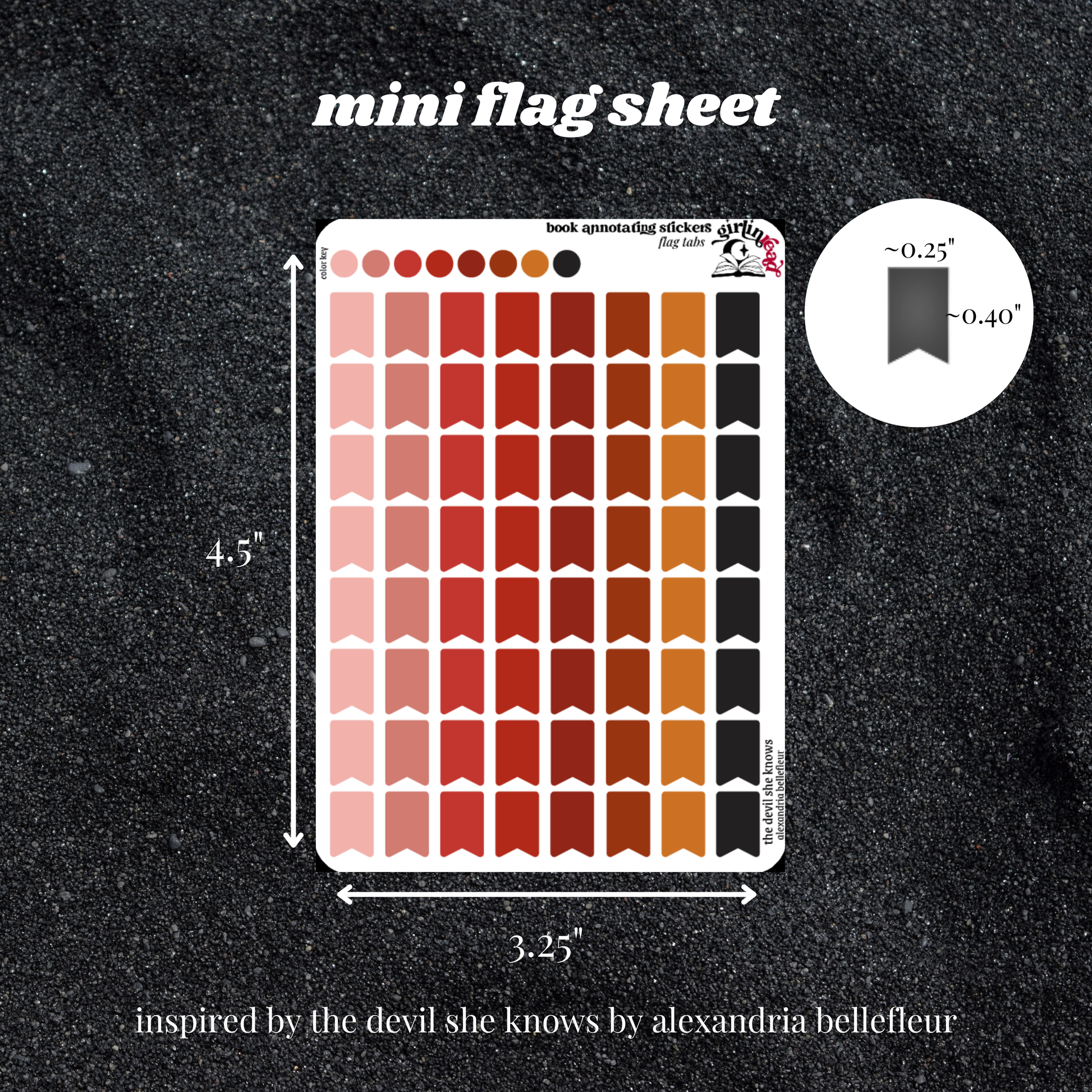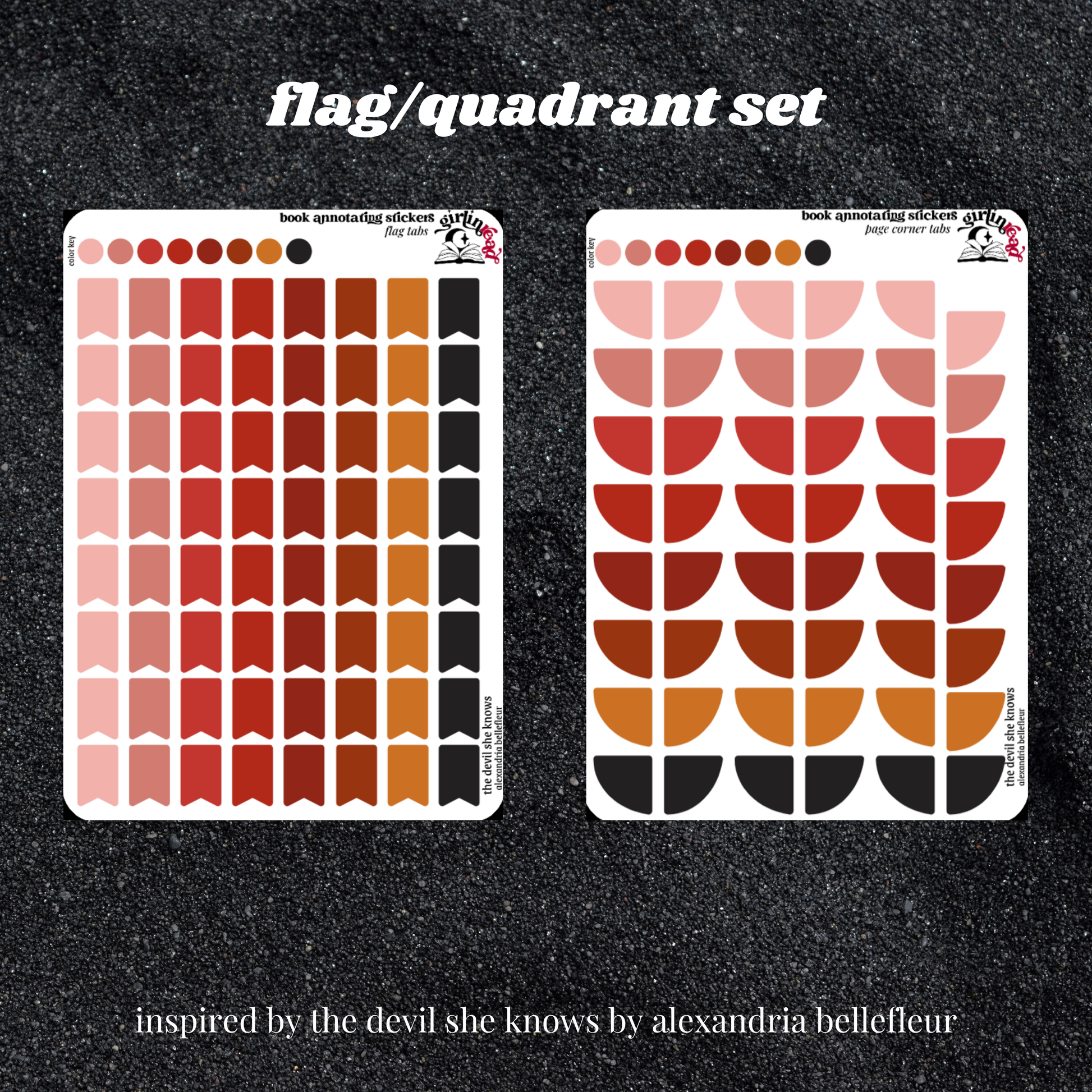 book annotating tabs in the color palette inspired by the book cover for the devil she knows! can be placed in the book you're annotating, your planner, your journal, your reading log, etc.!