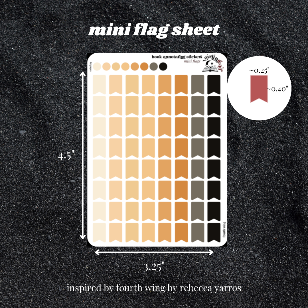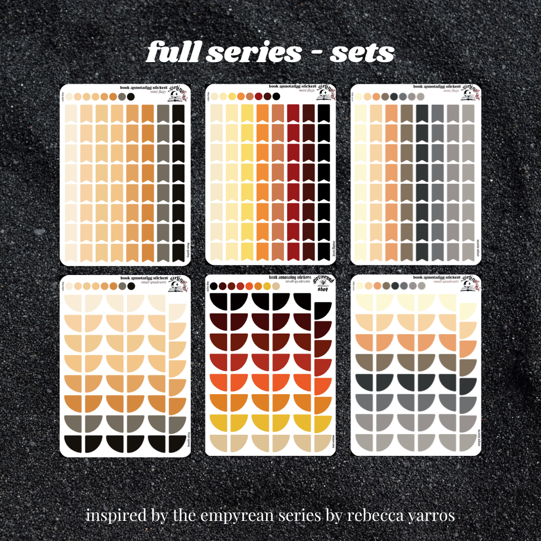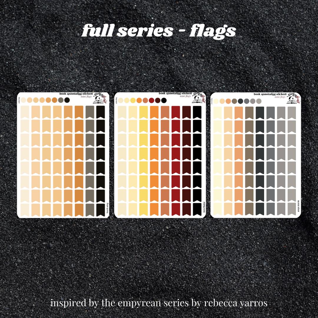 book annotating tabs in the color palette inspired by the book cover for the empyrean series (fourth wing, iron flame, onyx storm)! can be placed in the book you're annotating, your planner, your journal, your reading log, etc.!