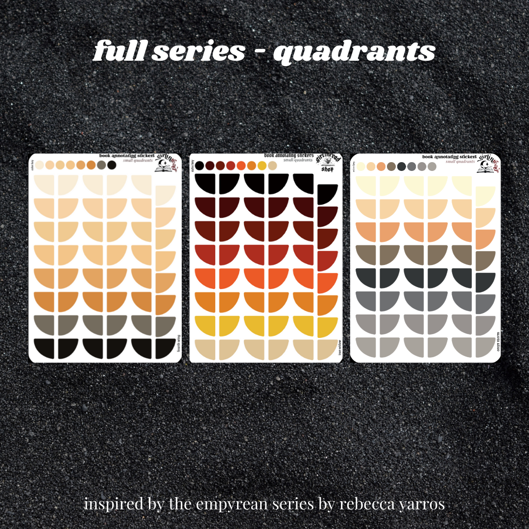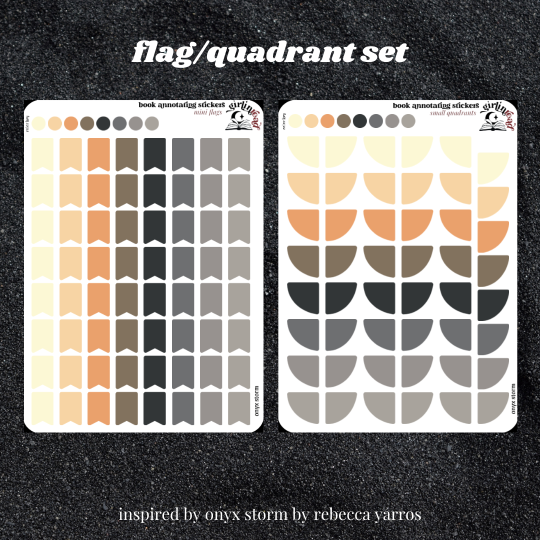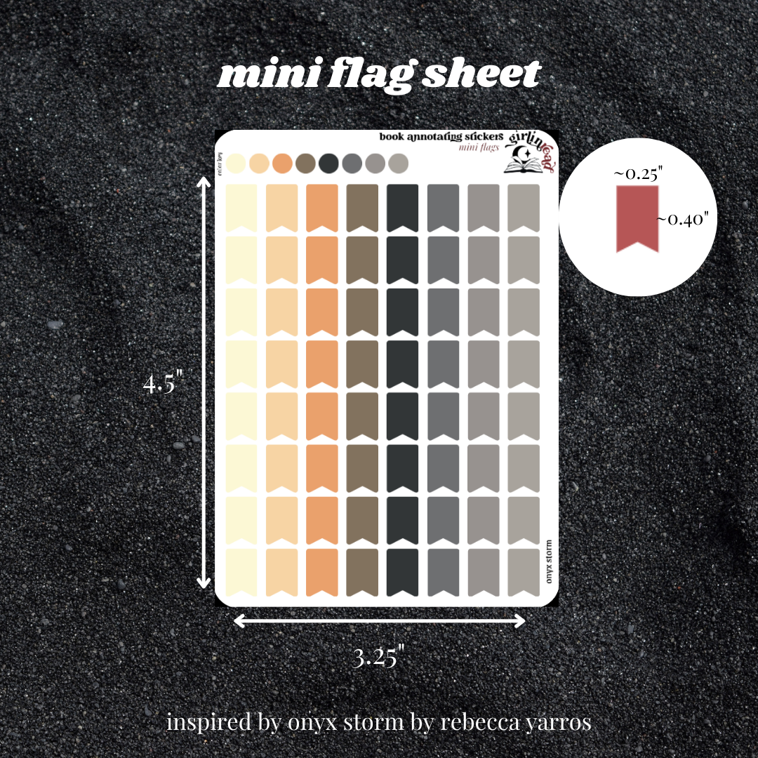 book annotating tabs in the color palette inspired by the book cover for the empyrean series (fourth wing, iron flame, onyx storm)! can be placed in the book you're annotating, your planner, your journal, your reading log, etc.!