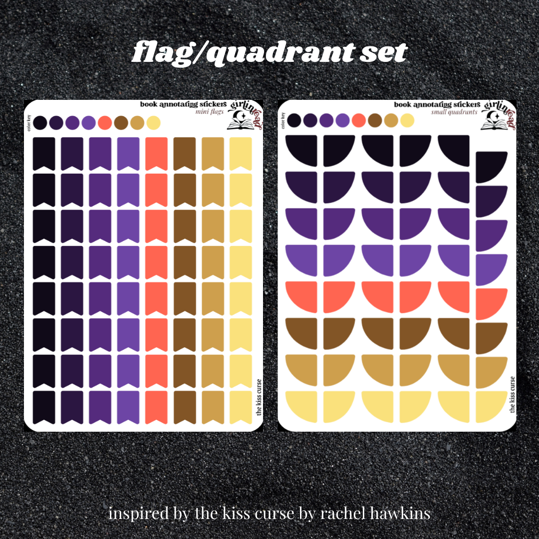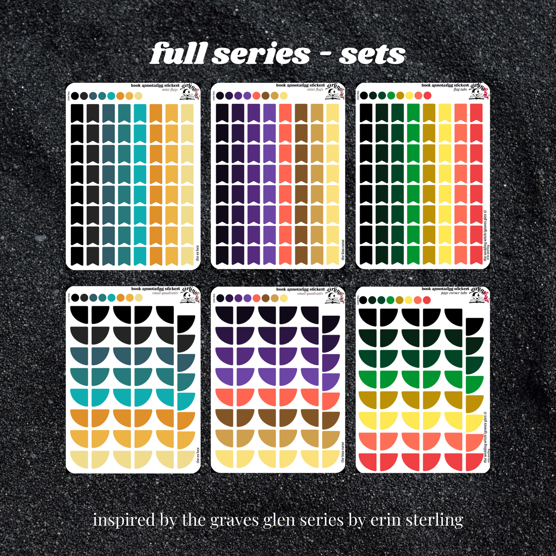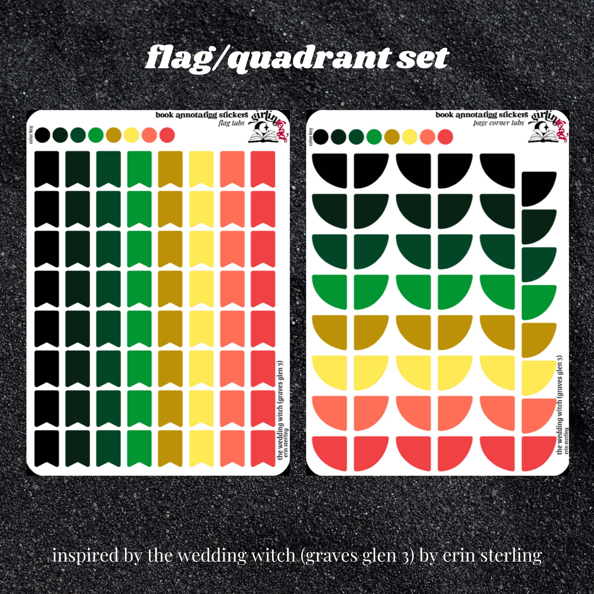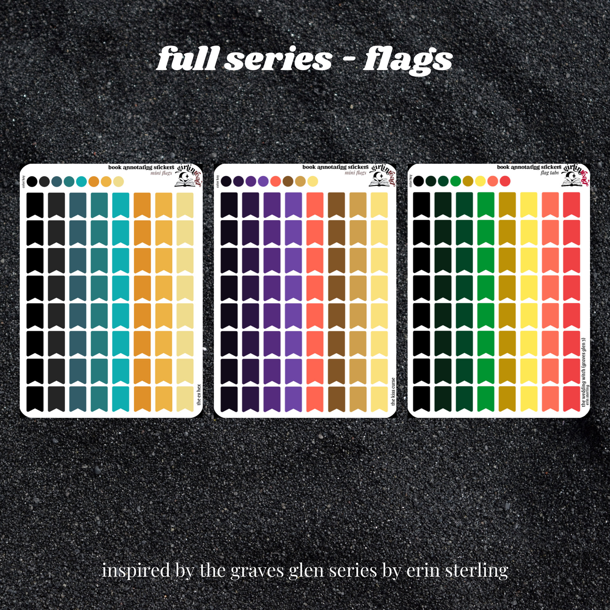 book annotating tabs in the color palette inspired by the book cover for the graves glen series (the ex hex, the kiss curse, the wedding witch)! can be placed in the book you're annotating, your planner, your journal, your reading log, etc.!