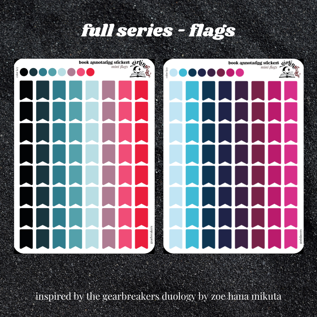 book annotating tabs in the color palette inspired by the book cover for the gearbreakers duology! can be placed in the book you're annotating, your planner, your journal, your reading log, etc.!