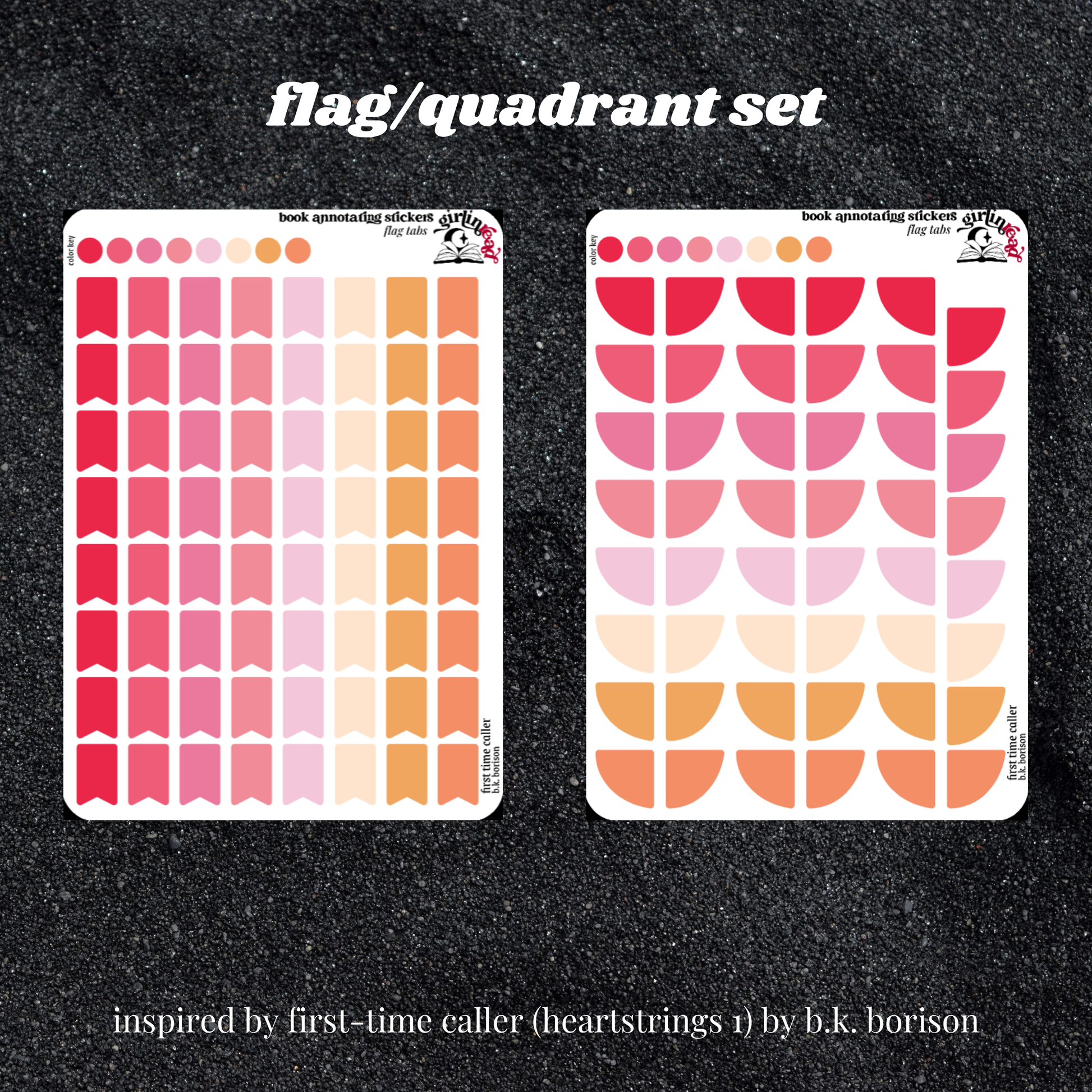 get everything you need to annotate the books in the heartstrings series (first-time caller) in the color palettes inspired by each book cover! can be placed in the book you're annotating, your planner, your journal, your reading log, etc.!