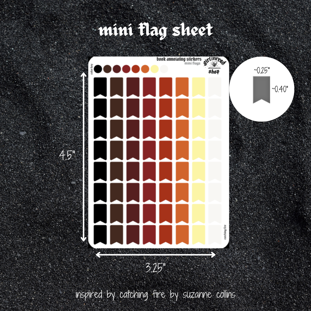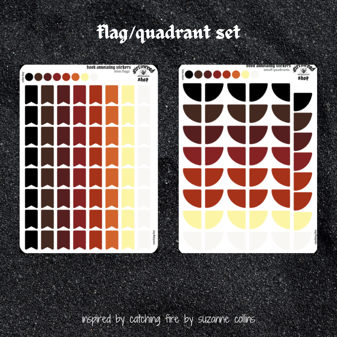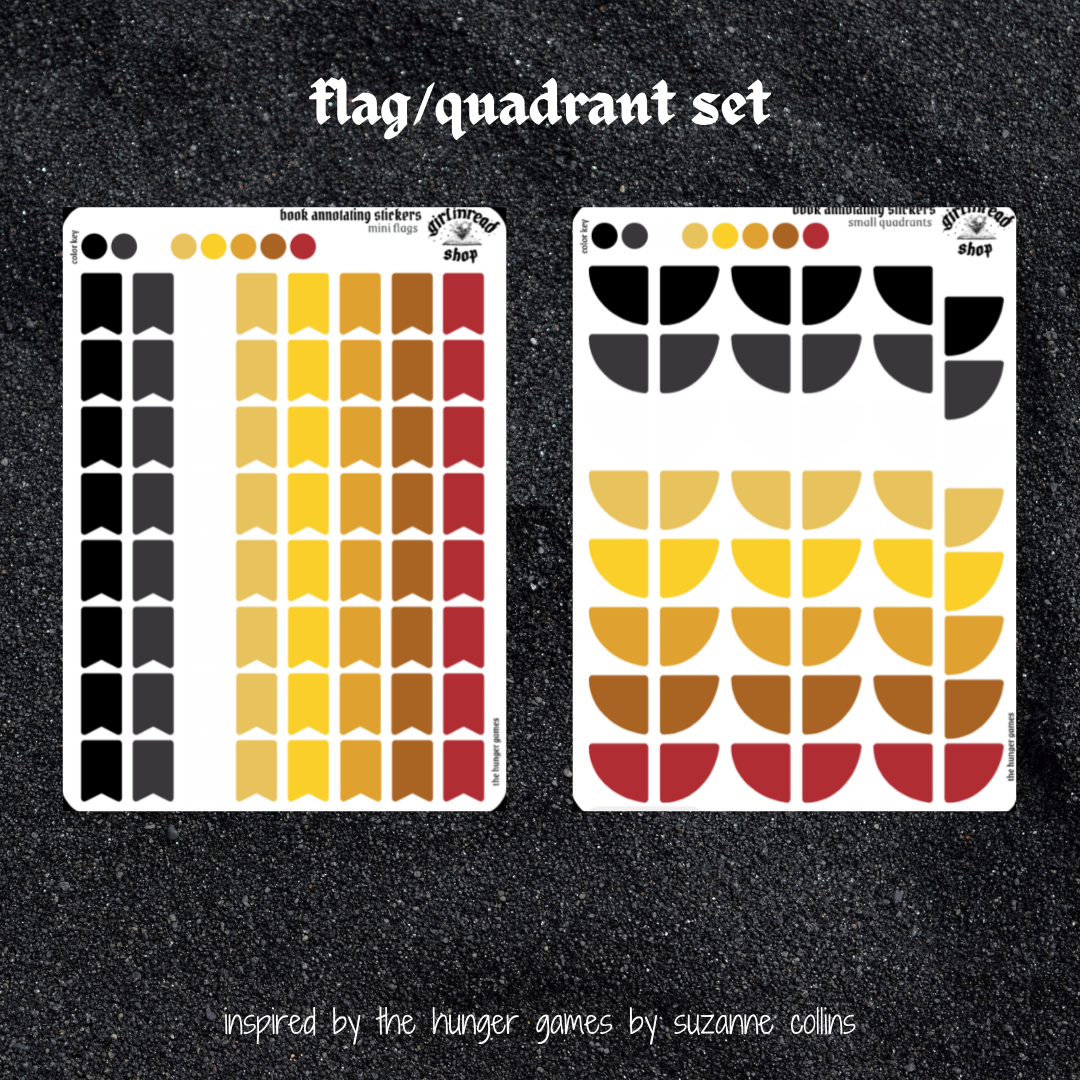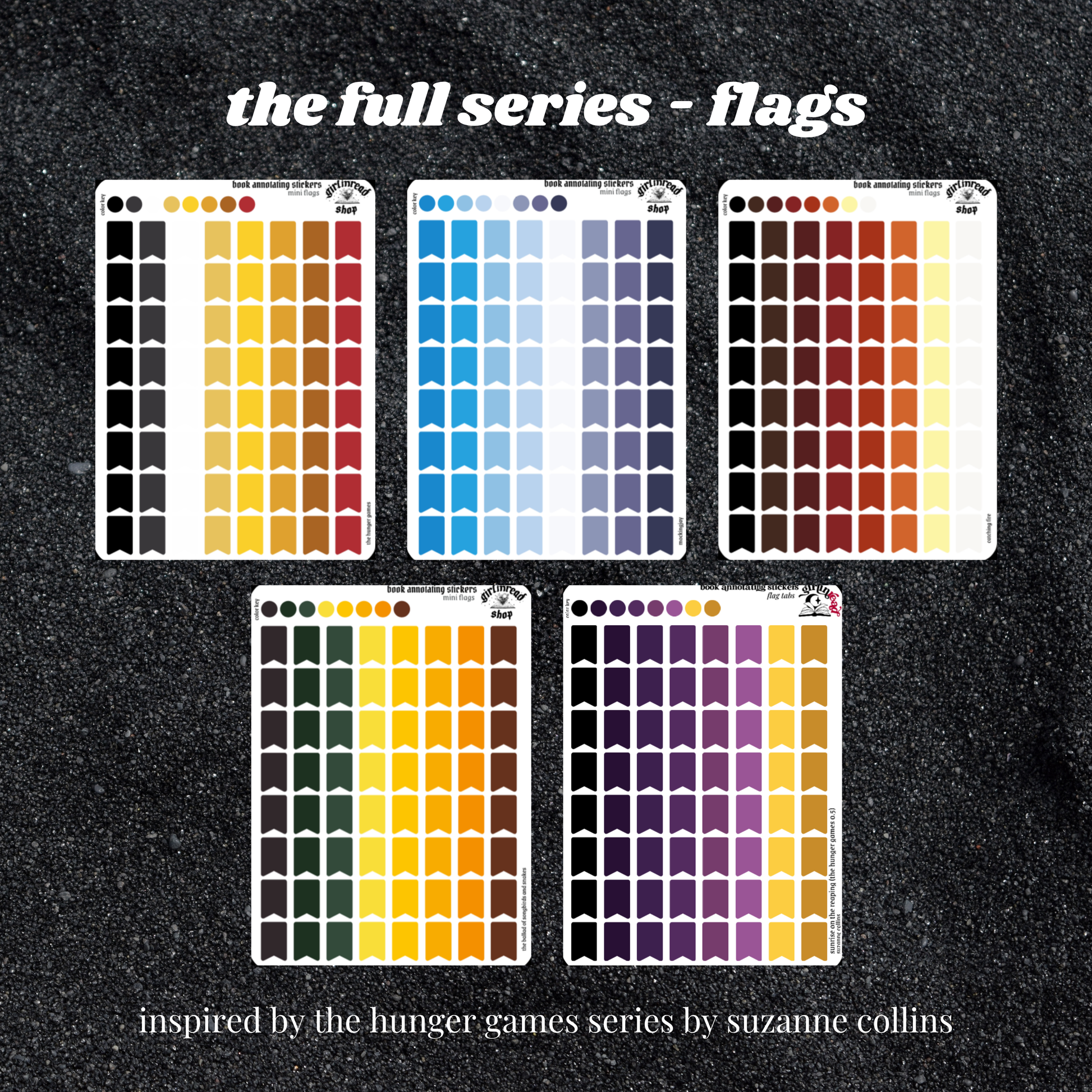 book annotating tabs in the color palette inspired by the book covers for the hunger games series! can be placed in the book you're annotating, your planner, your journal, your reading log, etc.!