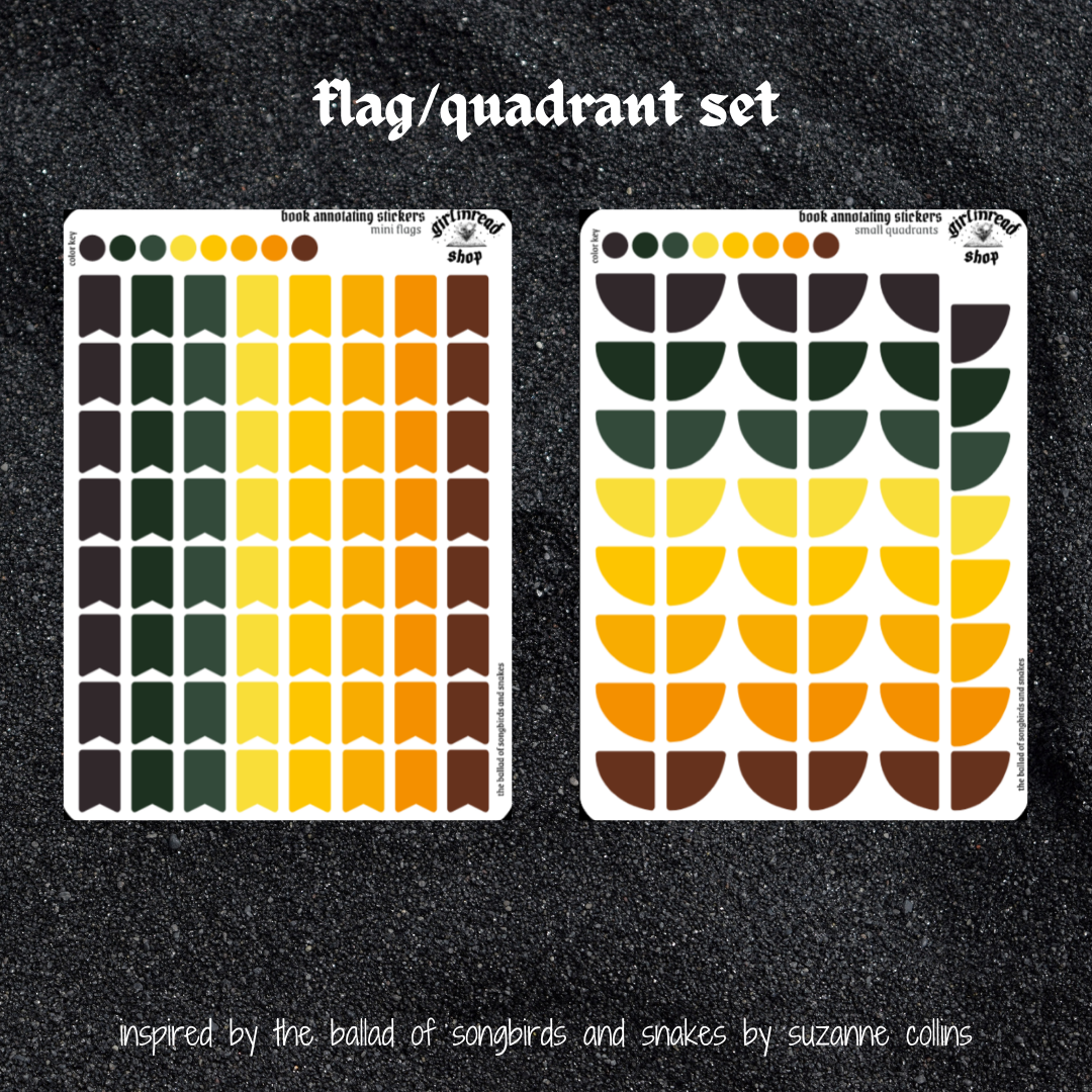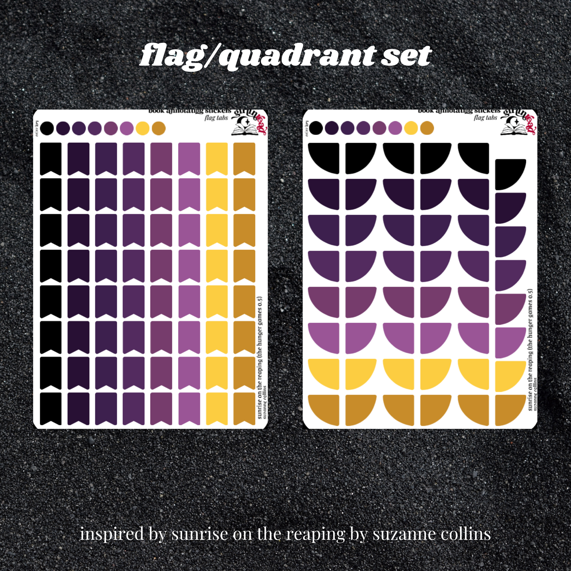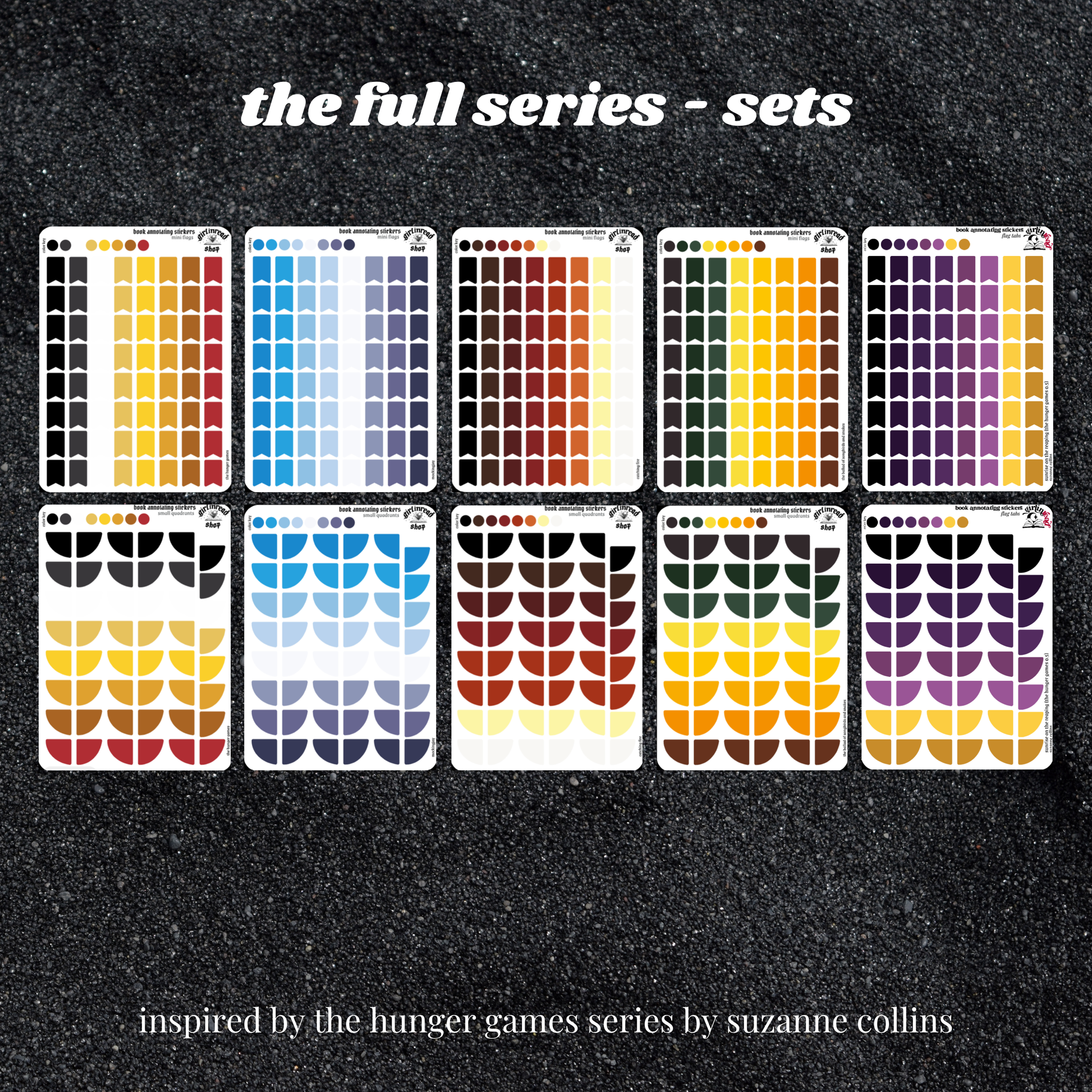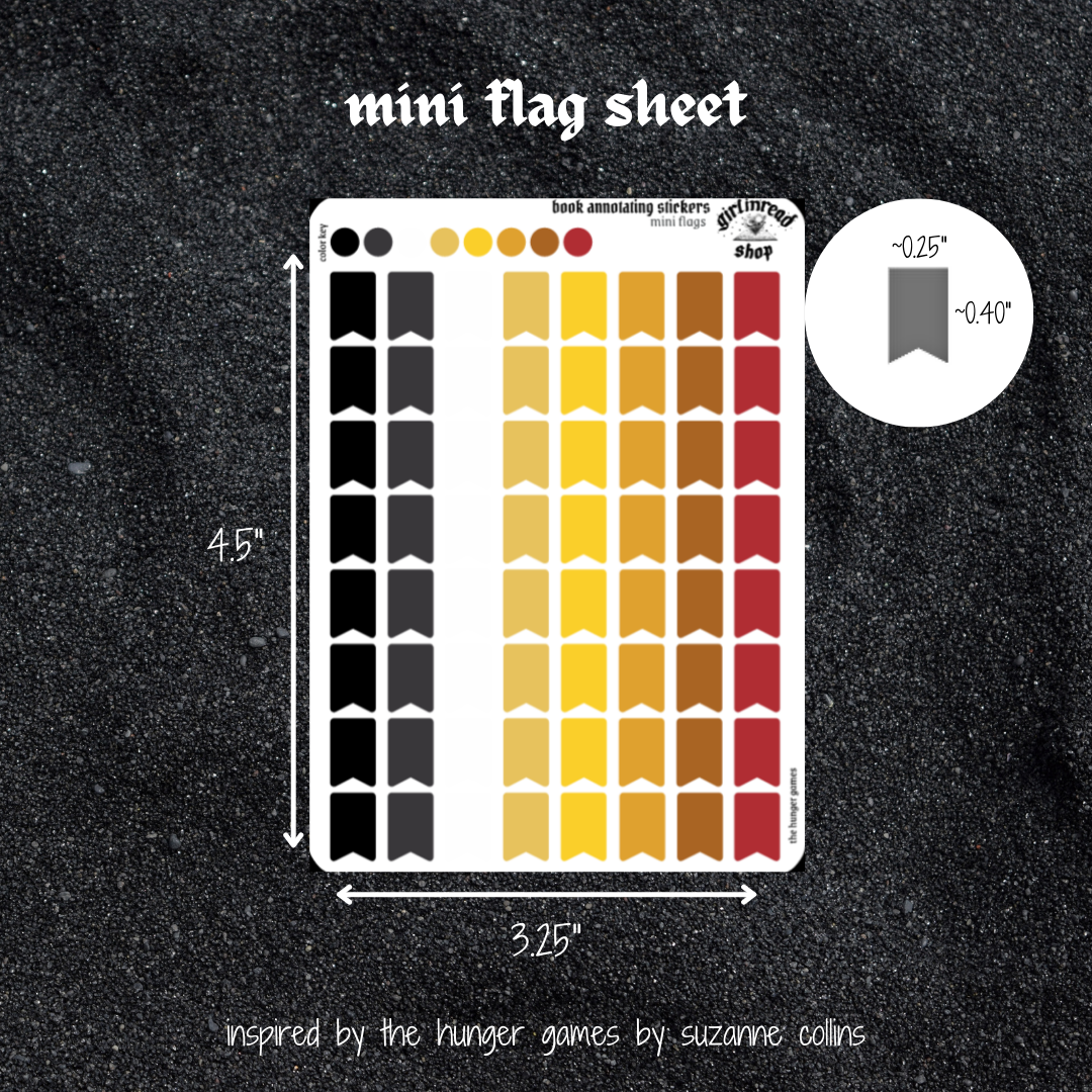 book annotating tabs in the color palette inspired by the book covers for the hunger games series! can be placed in the book you're annotating, your planner, your journal, your reading log, etc.!