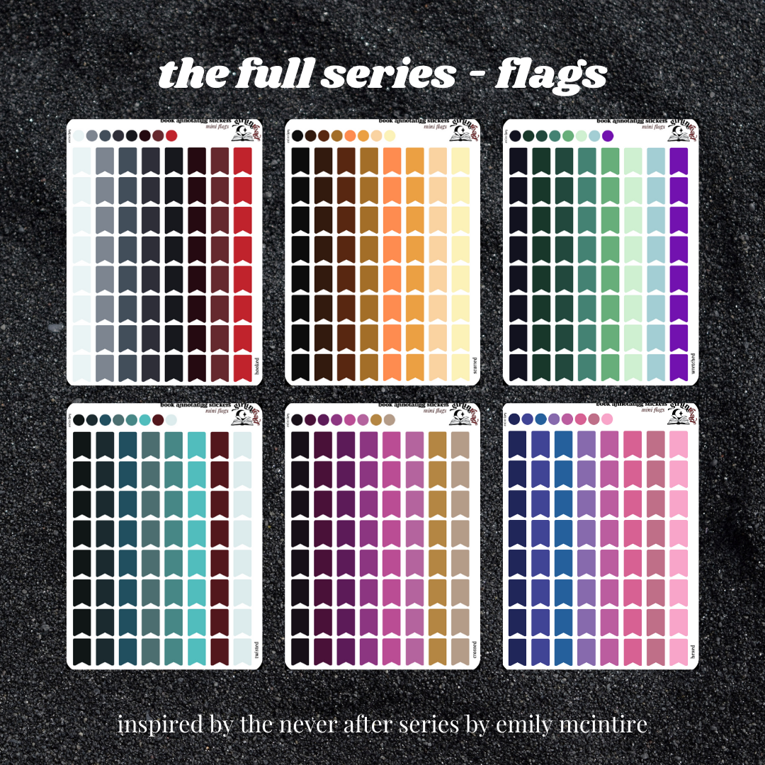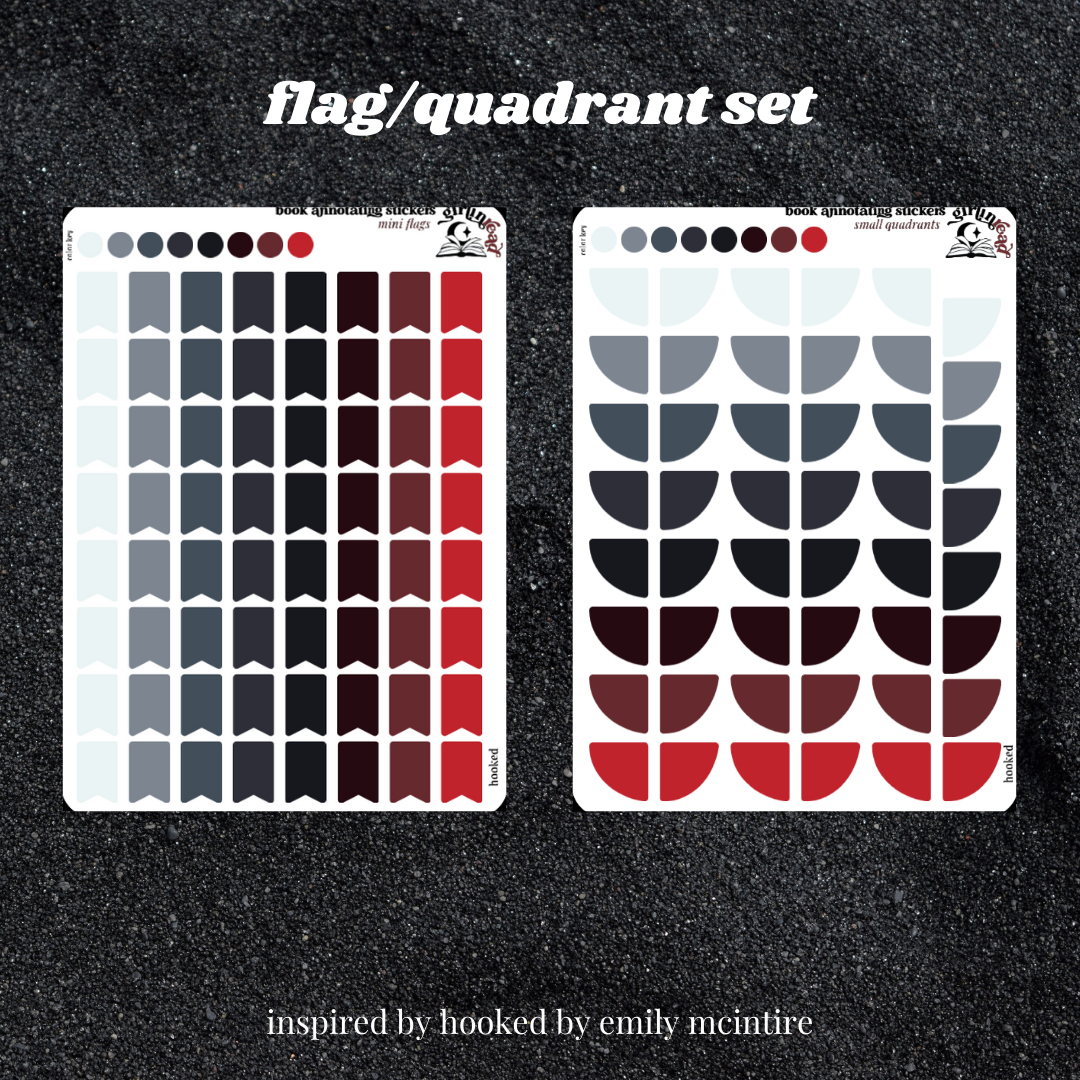 get everything you need to annotate the books in the never after series (hooked, scarred, wretched, twisted, crossed, hexed) in the color palettes inspired by each book cover! can be placed in the book you're annotating, your planner, your journal, your reading log, etc.!