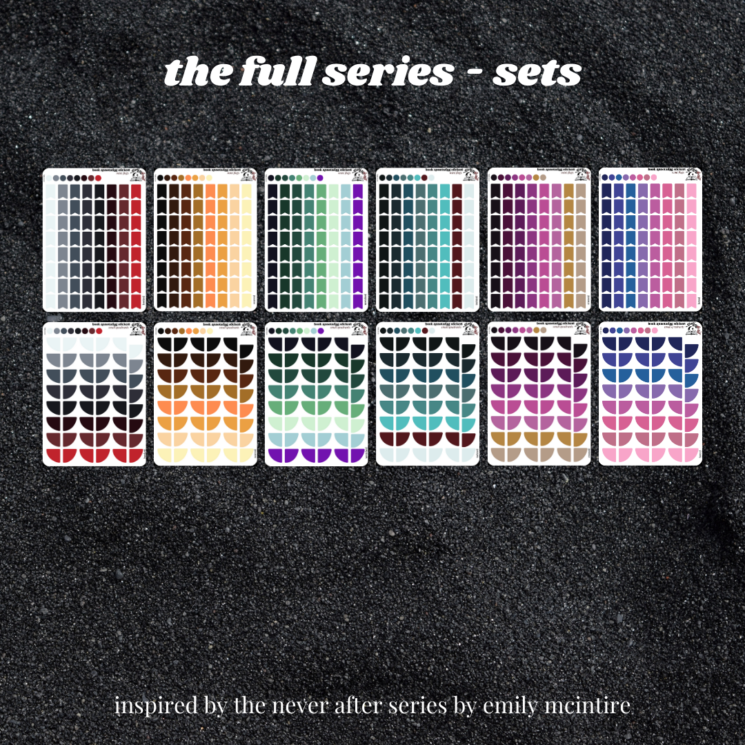 "the full series" comes with all stickers listed for all 6 books for each option.
