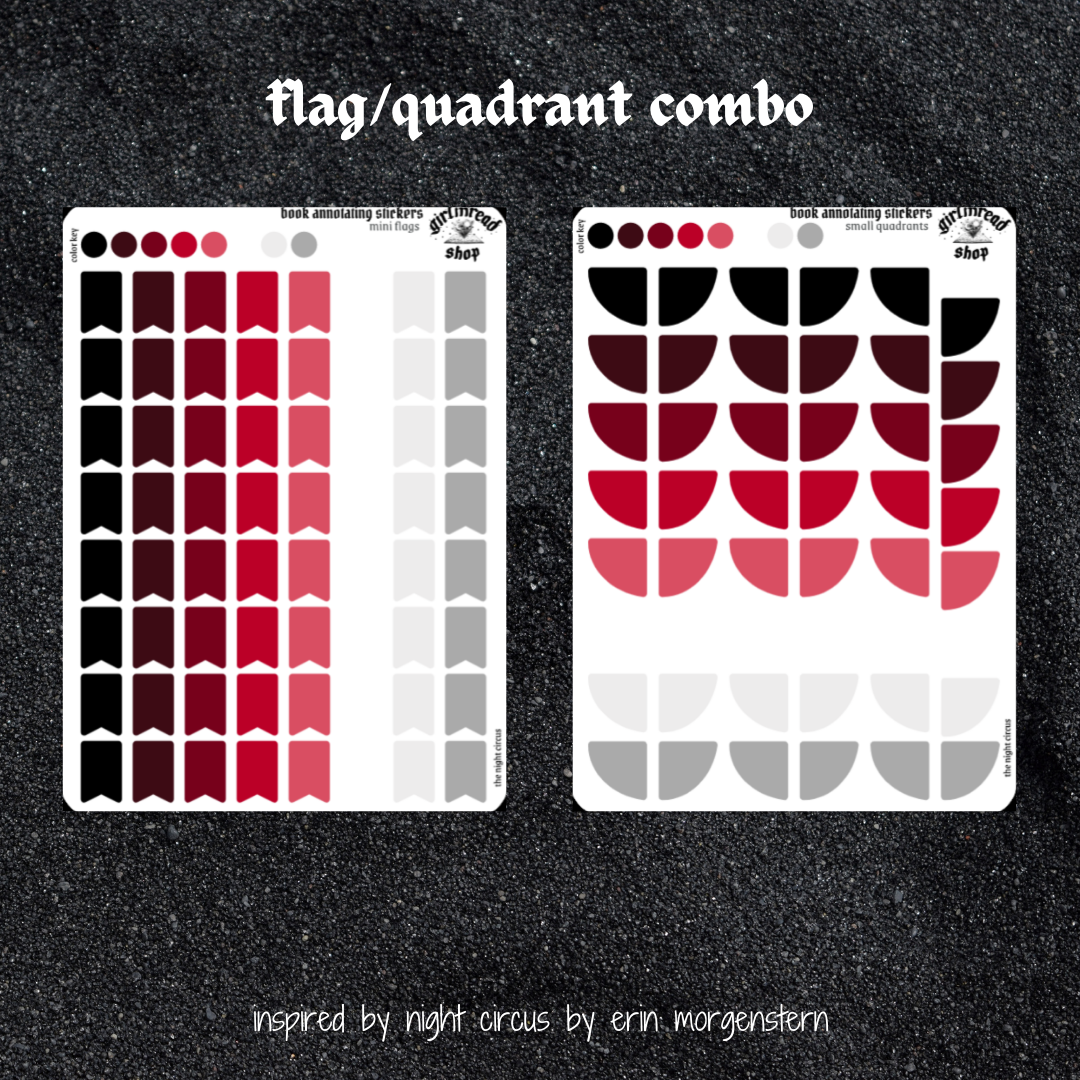 book annotating tabs in the color palette inspired by the book cover for the night circus! can be placed in the book you're annotating, your planner, your journal, your reading log, etc.!