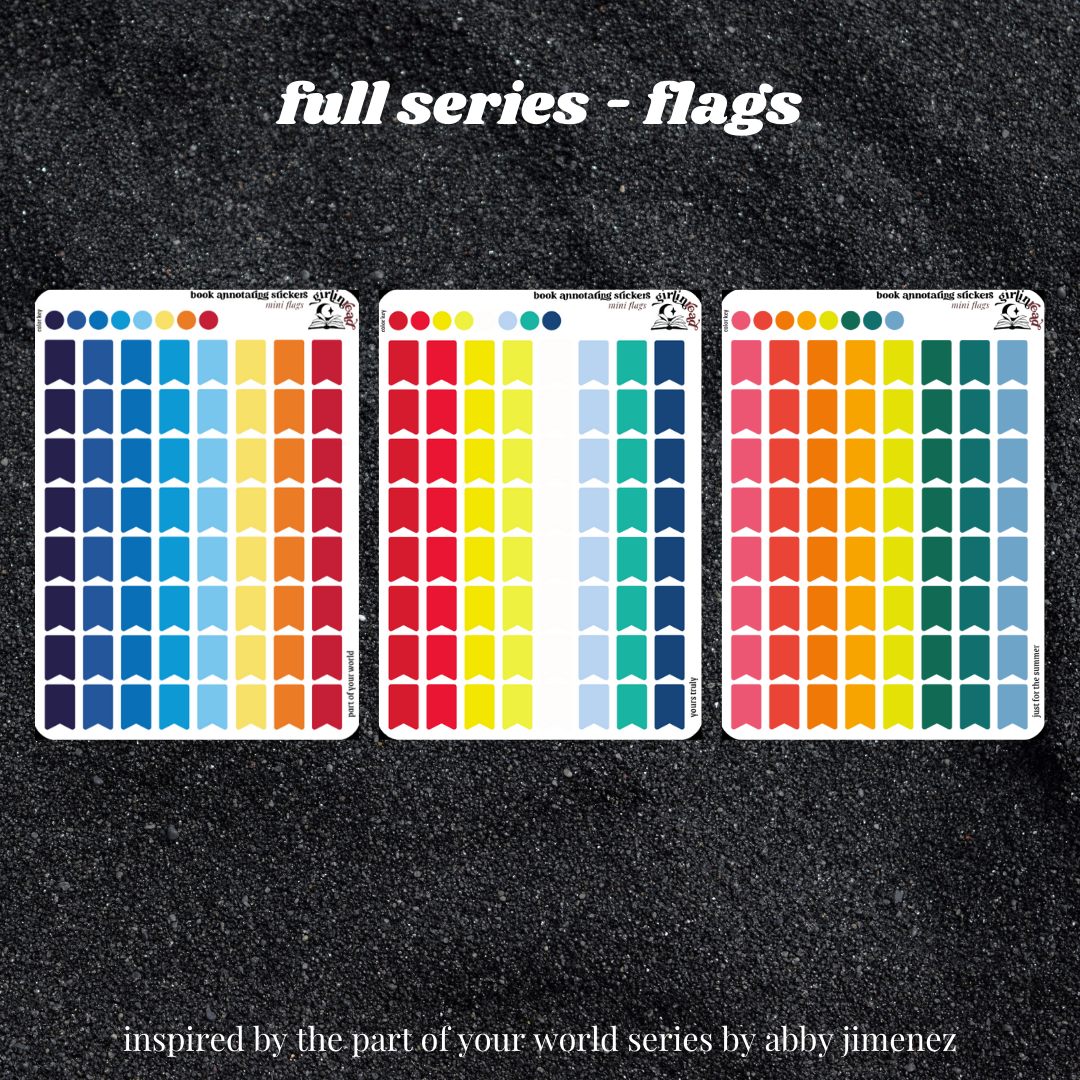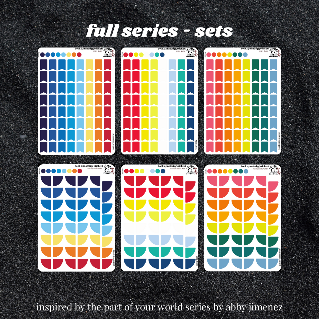 book annotating tabs in the color palettes inspired by the book covers for the part of your world series! can be placed in the book you're annotating, your planner, your journal, your reading log, etc.!