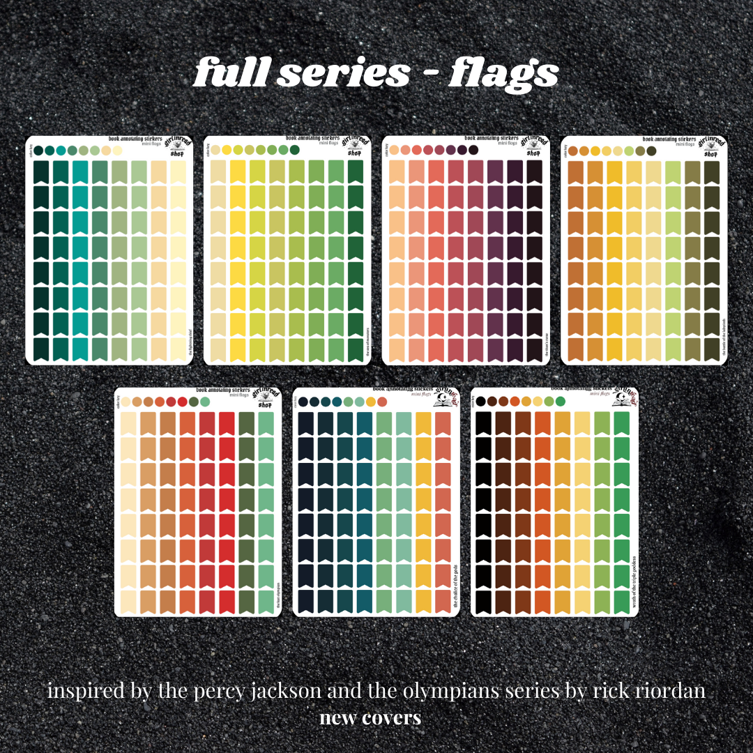 get everything you need to annotate the books in the percy jackson & the olympians series in the color palettes inspired by each book cover! can be placed in the book you're annotating, your planner, your journal, your reading log, etc.!