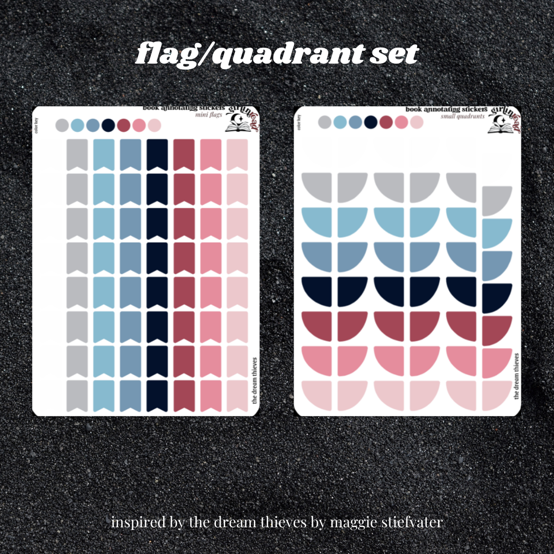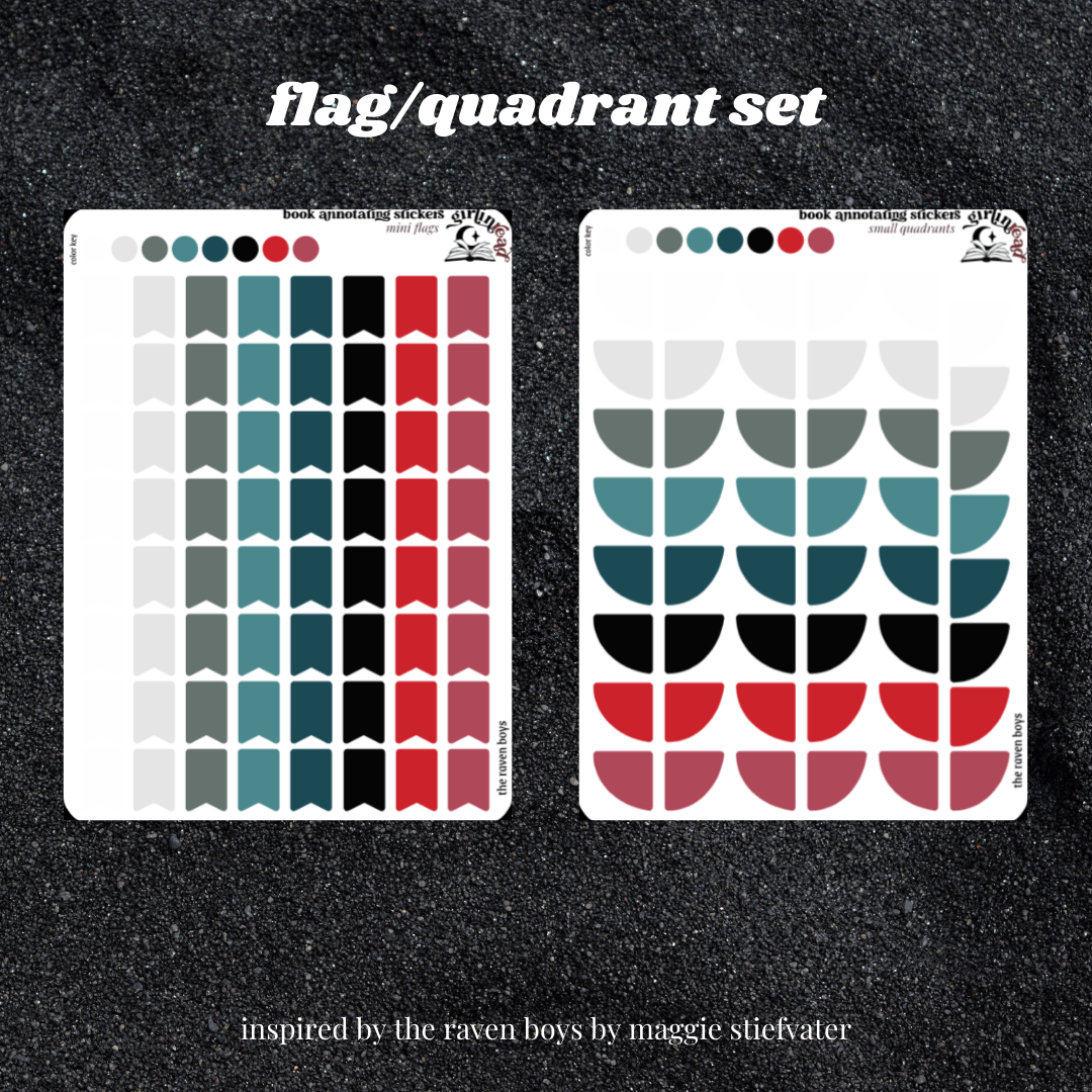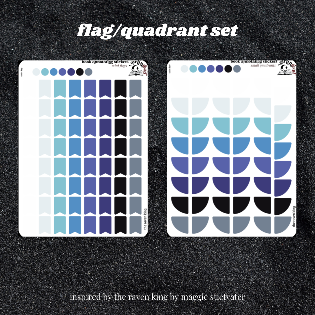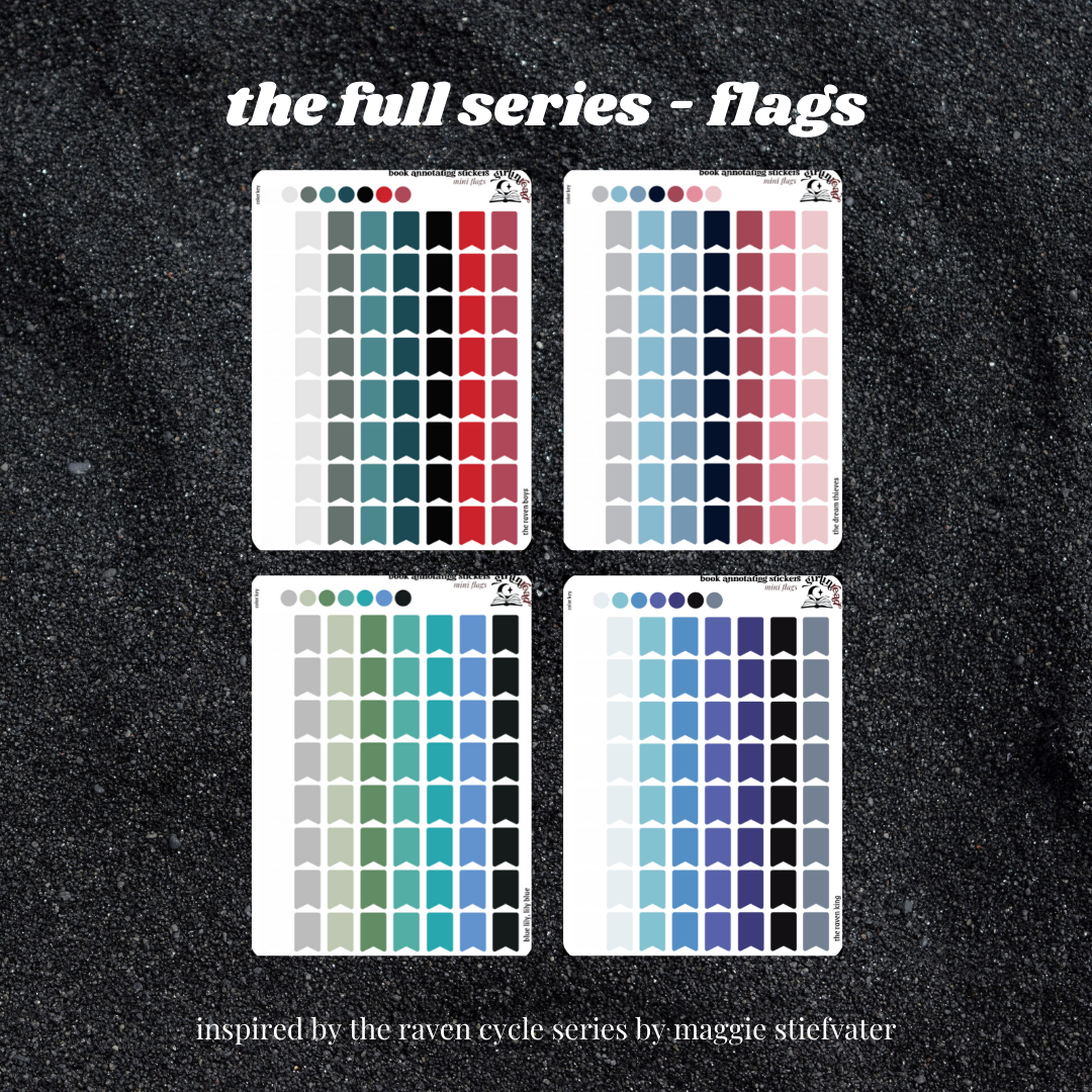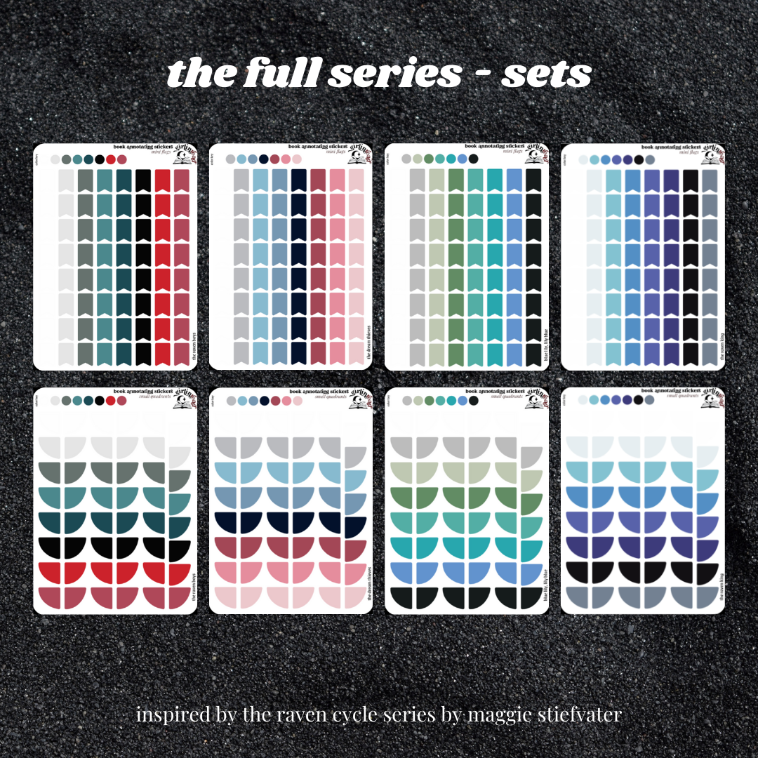 get everything you need to annotate the books in the raven cycle series (the raven boys, the dream thieves, blue lily, lily blue, the raven king) in the color palettes inspired by each book cover! can be placed in the book you're annotating, your planner, your journal, your reading log, etc.!