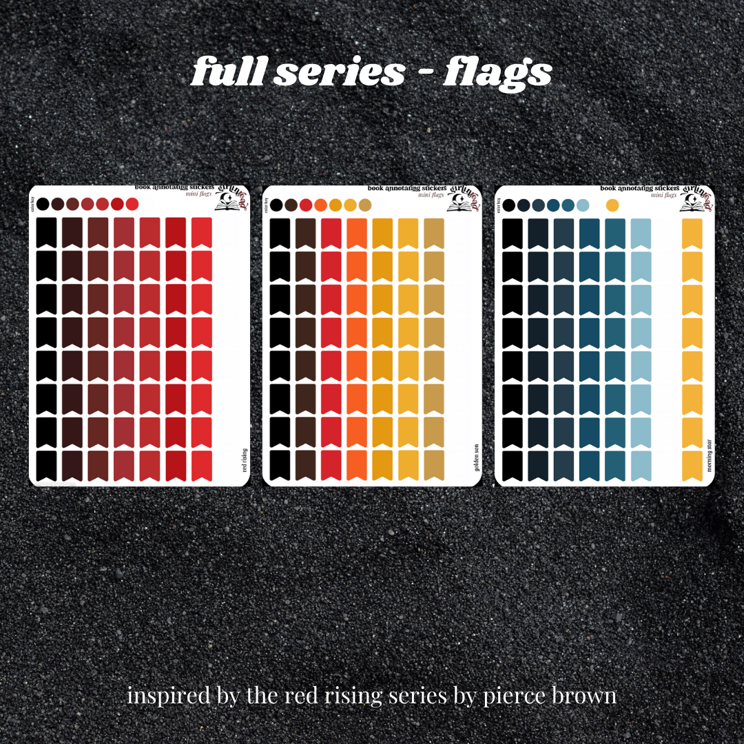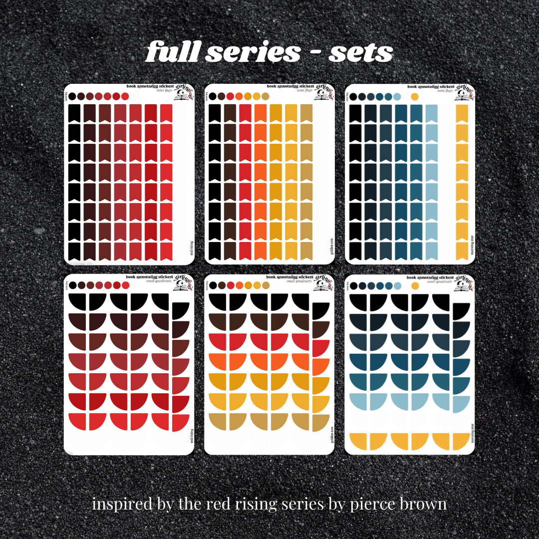 book annotating tabs in the color palettes inspired by the book covers for the red rising series! can be placed in the book you're annotating, your planner, your journal, your reading log, etc.!