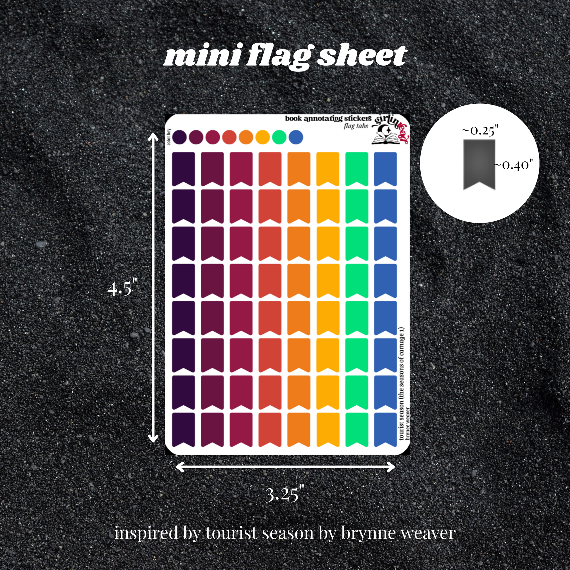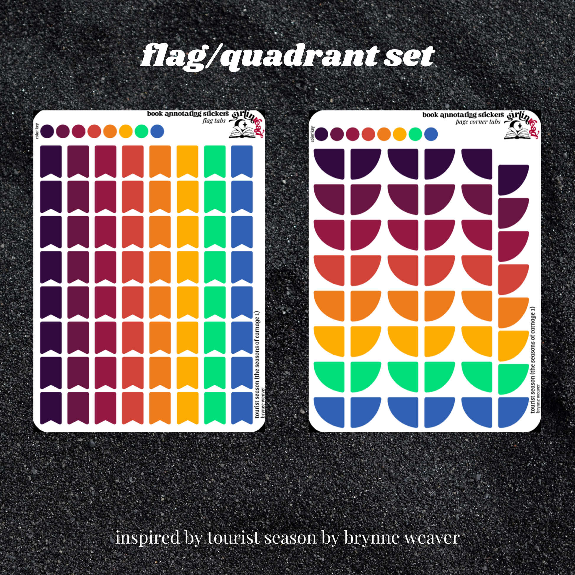 book annotating tabs in the color palette inspired by the book cover for the seasons of carnage series (tourist season)! can be placed in the book you're annotating, your planner, your journal, your reading log, etc.!
