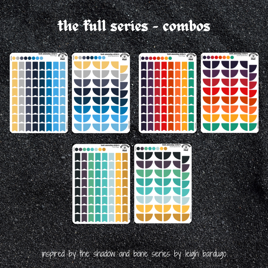 get everything you need to annotate the books in the shadow and bone series in the color palettes inspired by each book cover! can be placed in the book you're annotating, your planner, your journal, your reading log, etc.!
