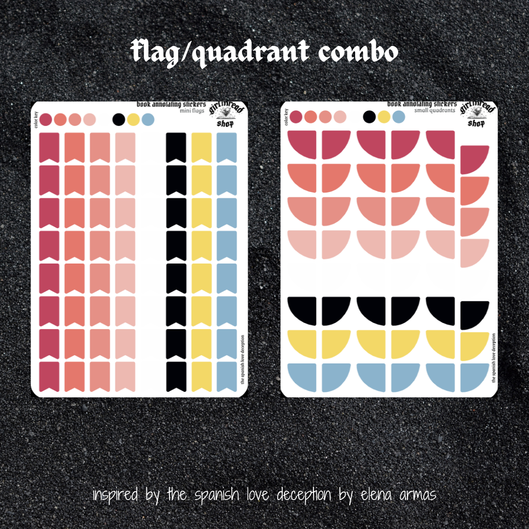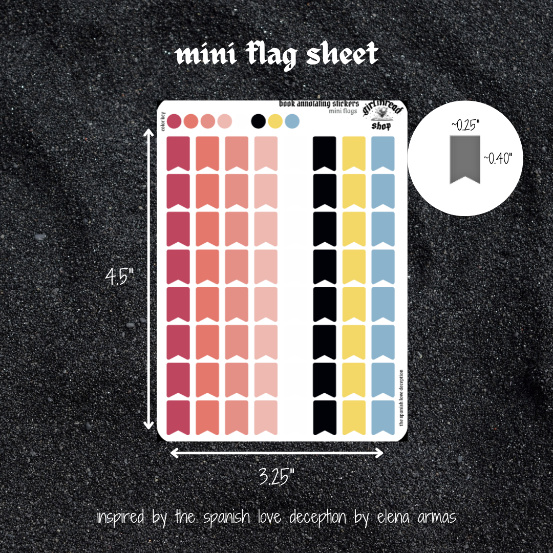 book annotating tabs in the color palette inspired by the book cover for the spanish love deception! can be placed in the book you're annotating, your planner, your journal, your reading log, etc.!