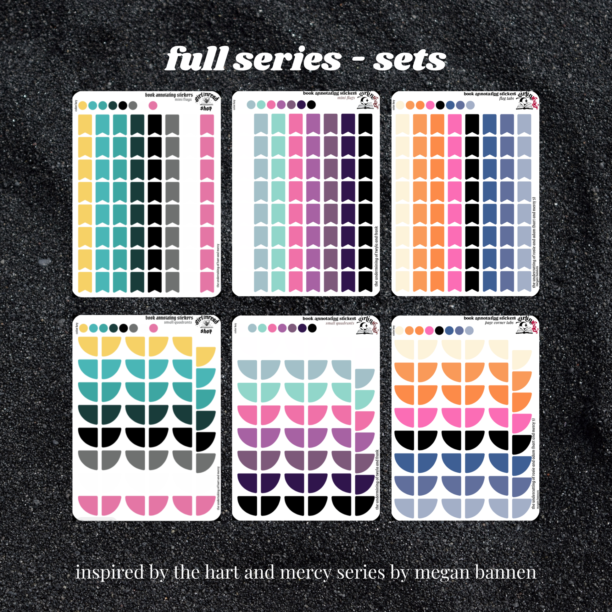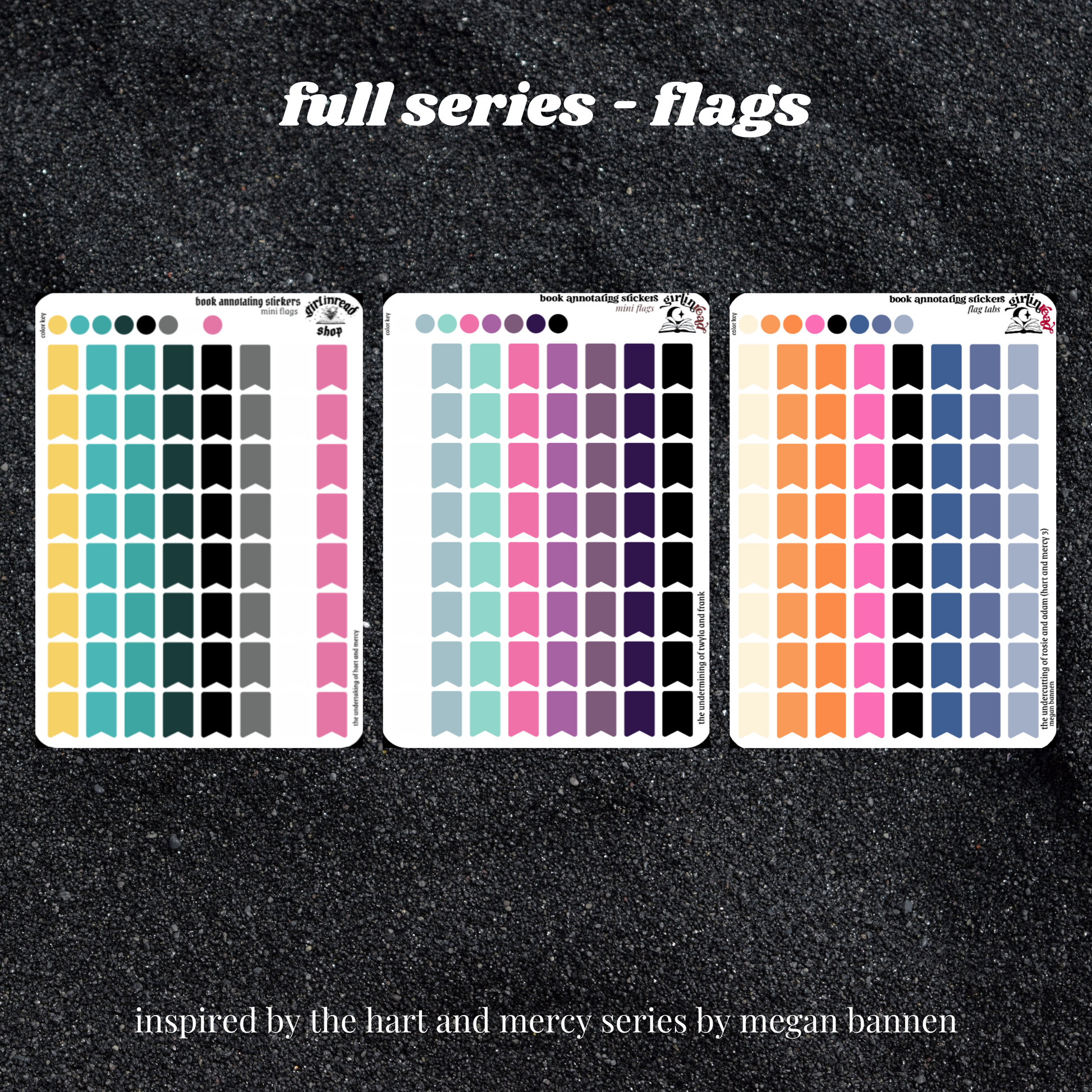 book annotating tabs in the color palette inspired by the book cover for the hart and mercy series! can be placed in the book you're annotating, your planner, your journal, your reading log, etc.!