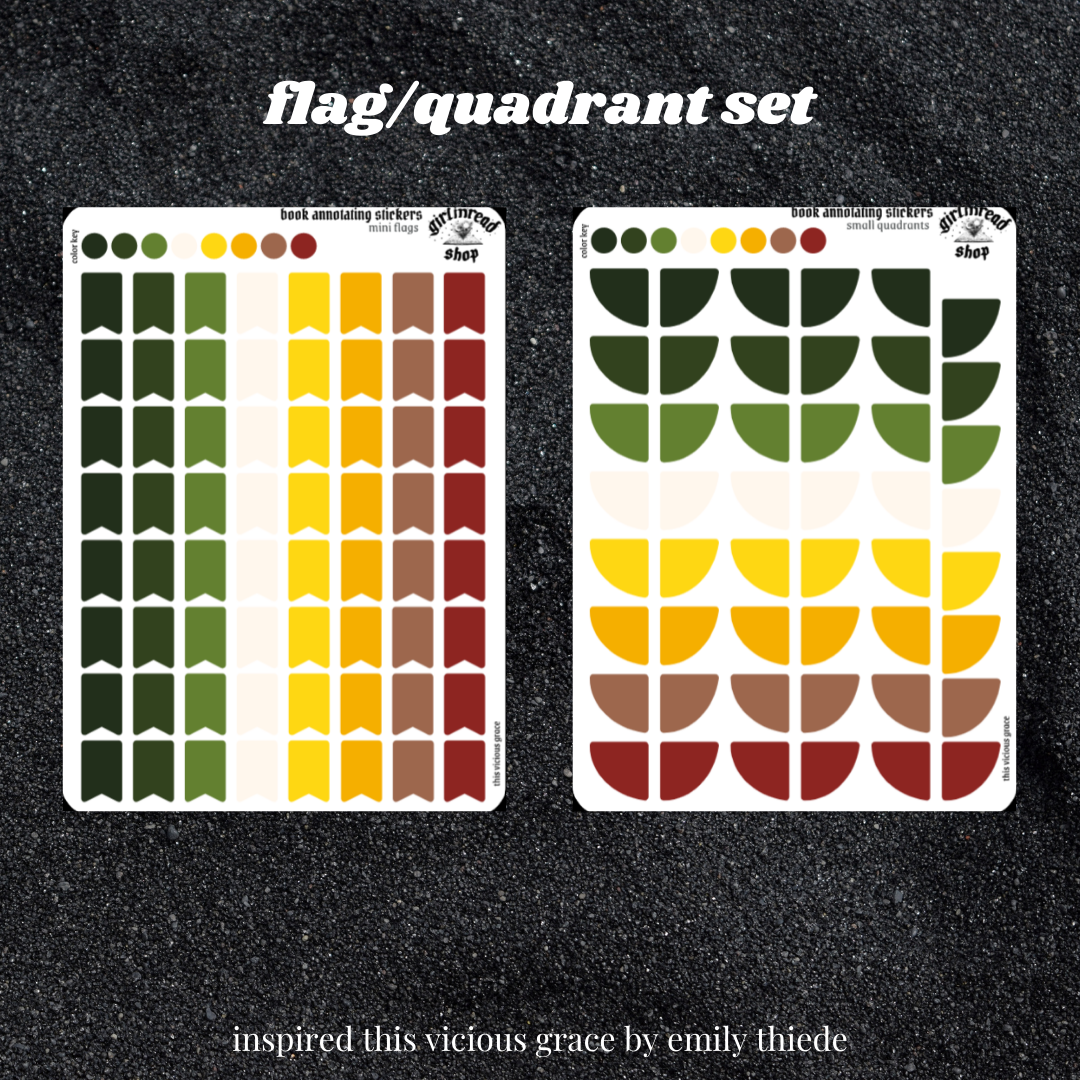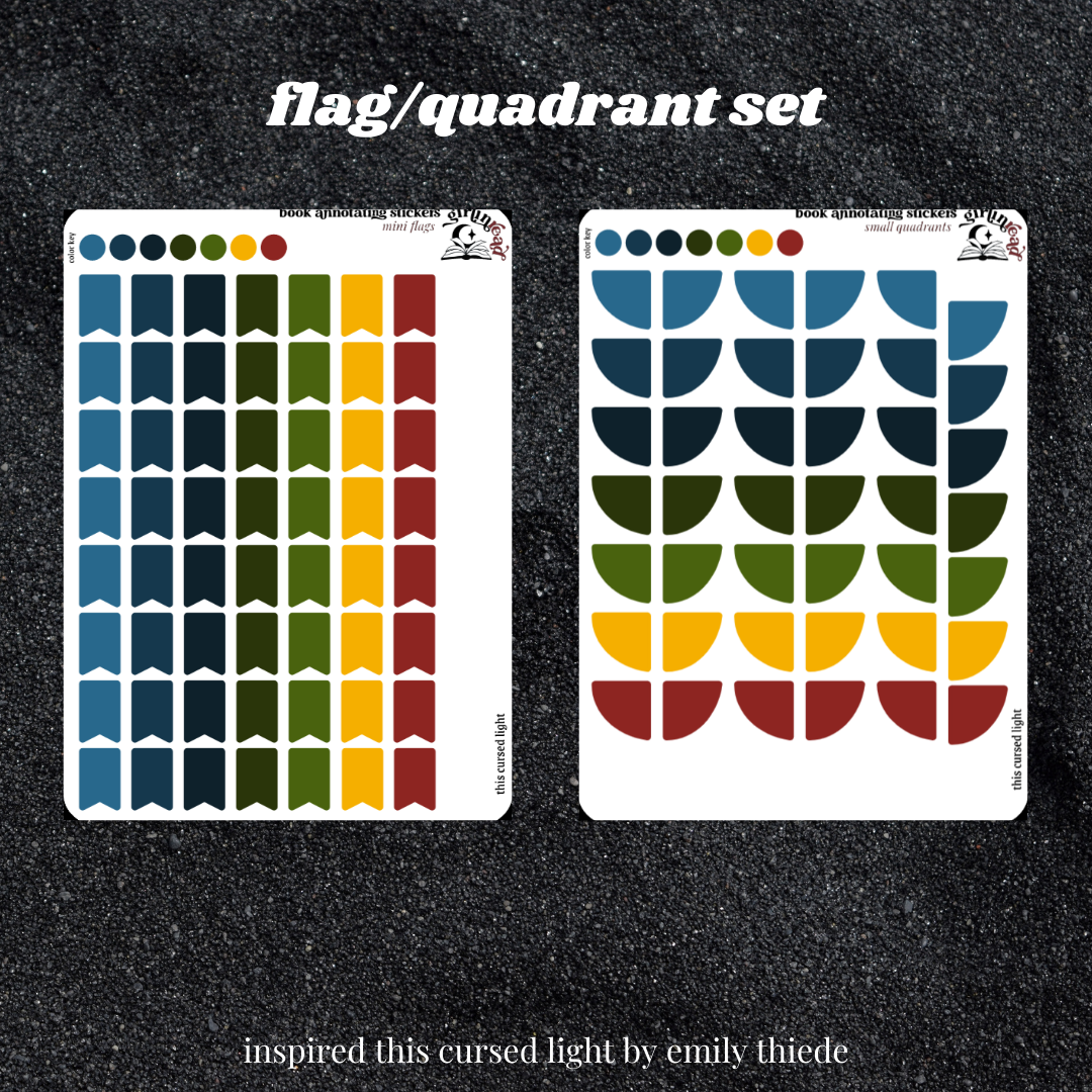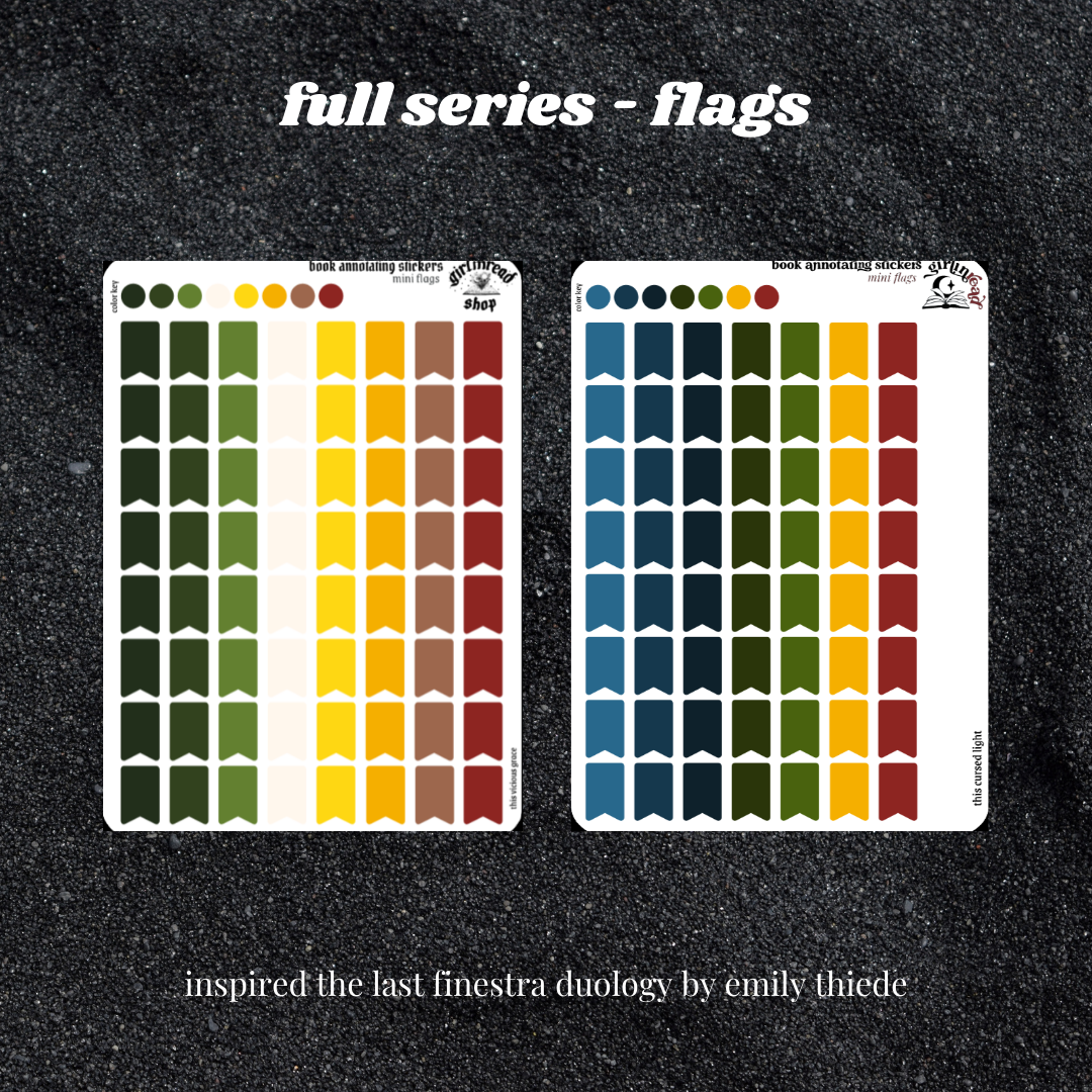 book annotating tabs in the color palette inspired by the book cover for the last finestra duology (this vicious grace, this cursed light)! can be placed in the book you're annotating, your planner, your journal, your reading log, etc.!