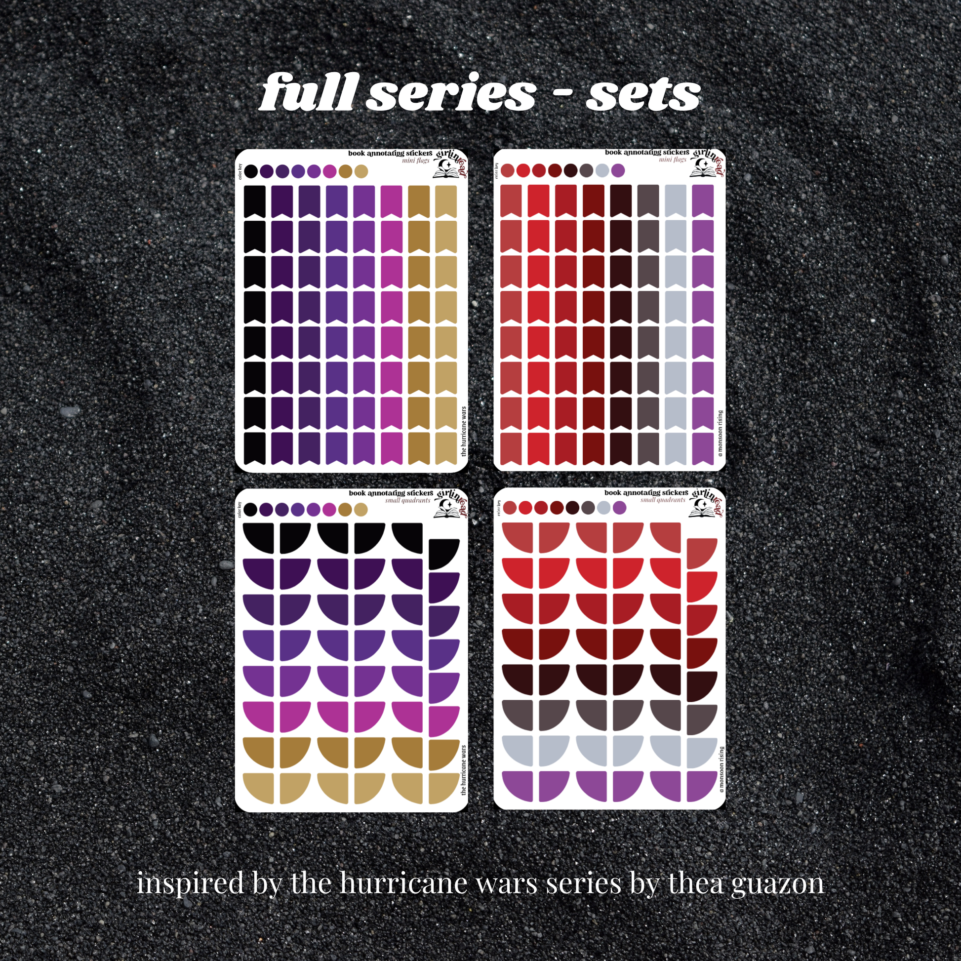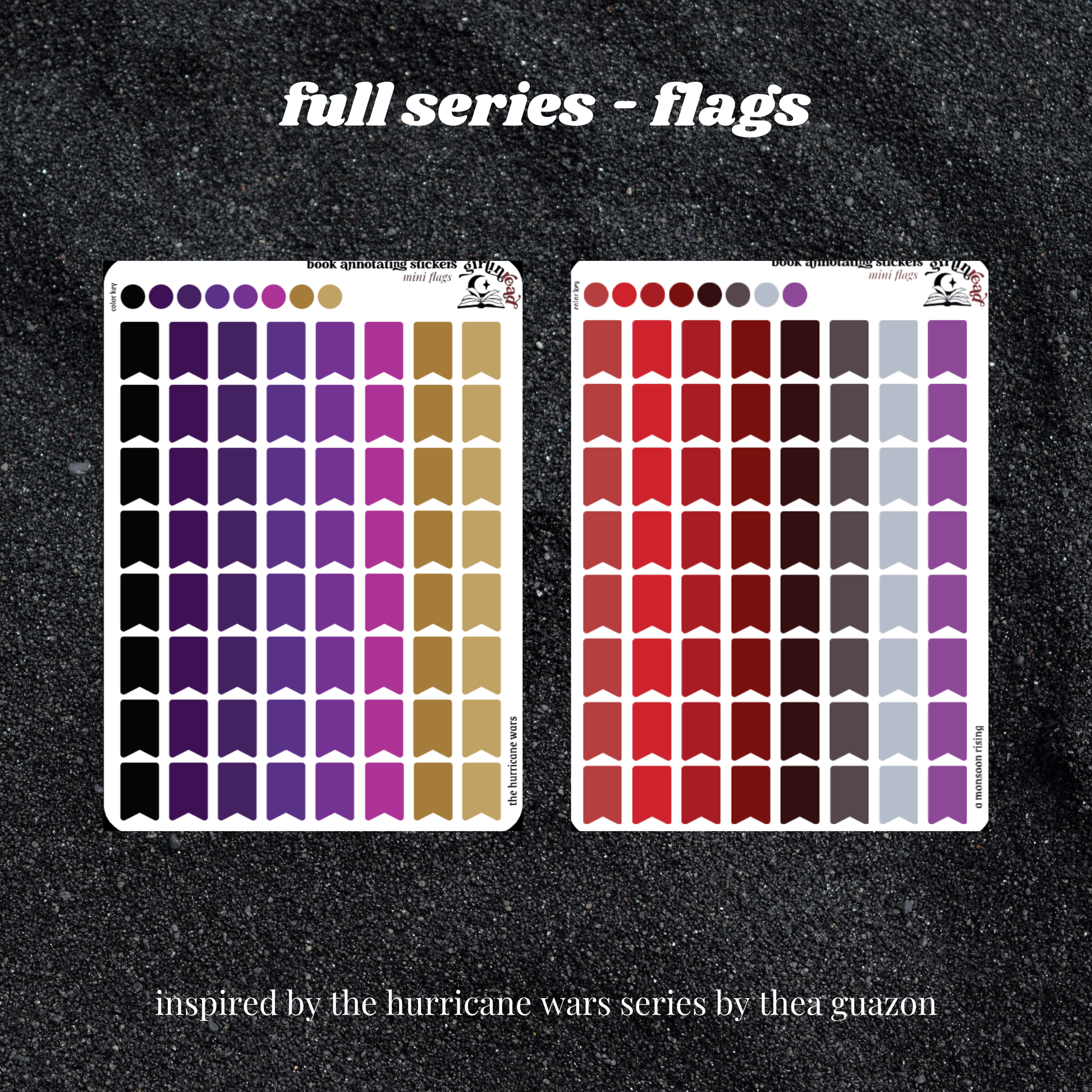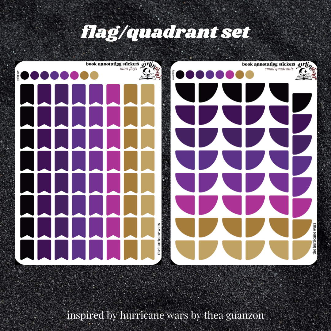 book annotating tabs in the color palette inspired by the book cover for the hurricane wars series! can be placed in the book you're annotating, your planner, your journal, your reading log, etc.!