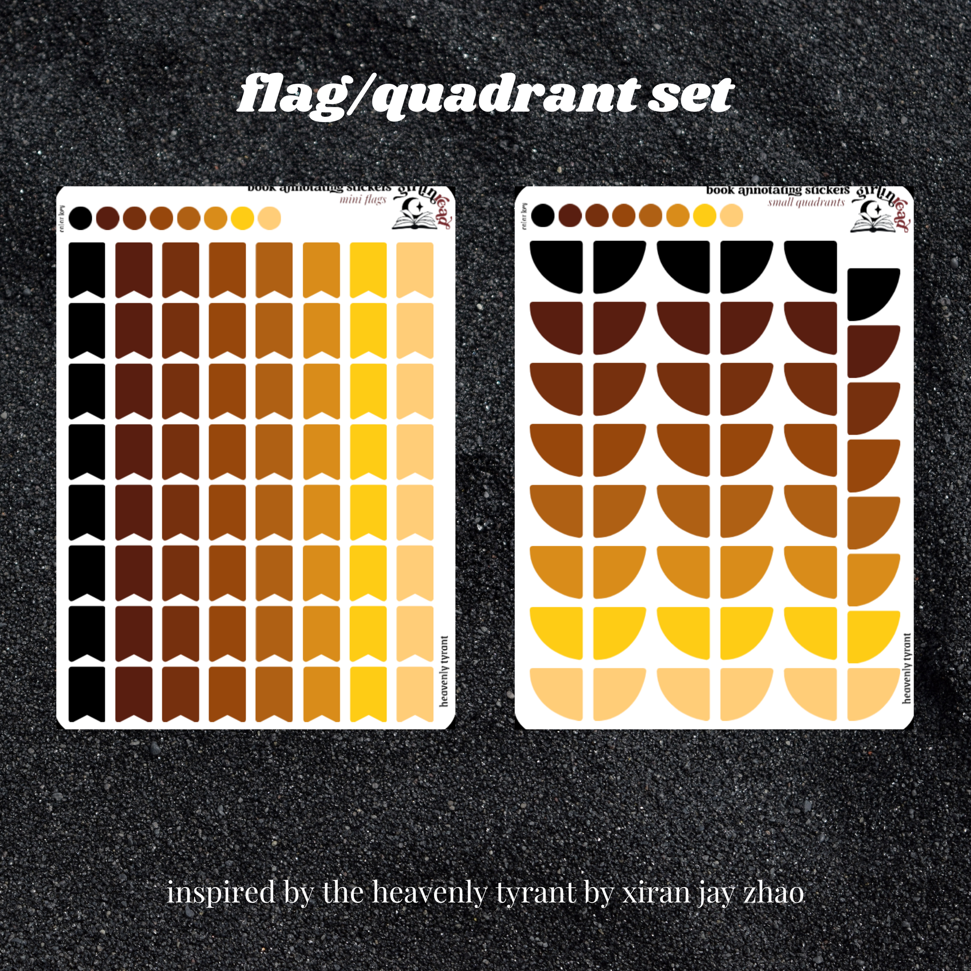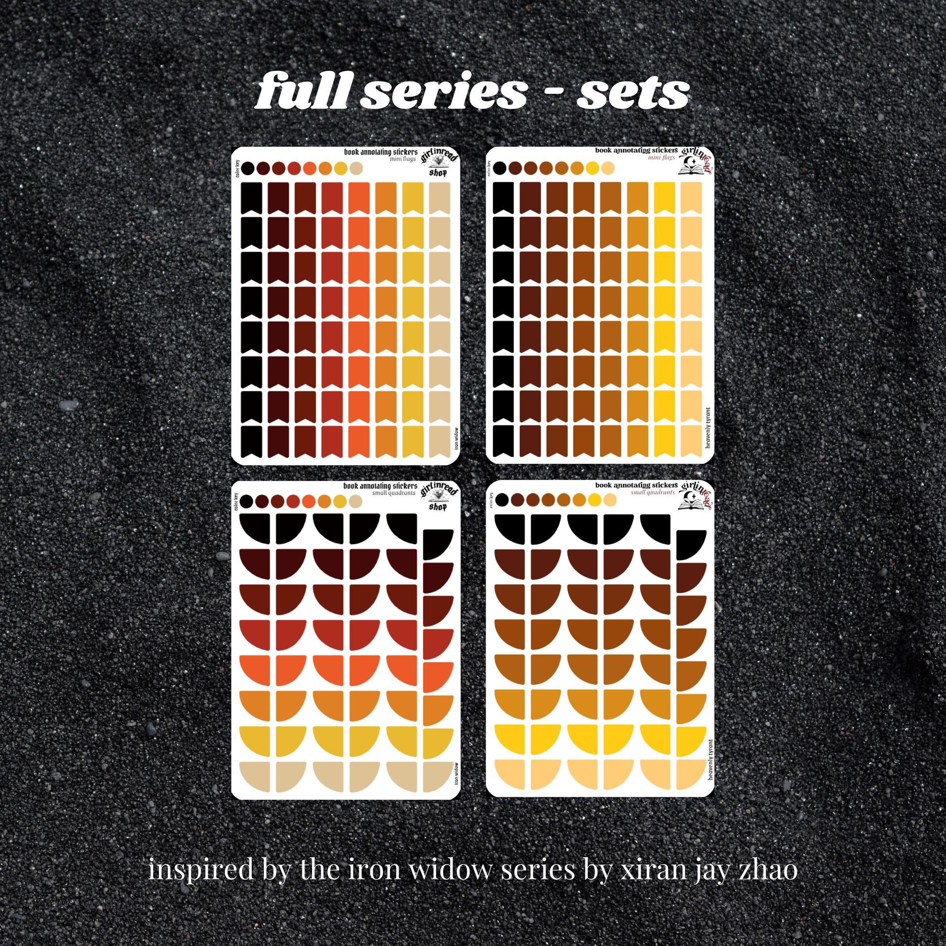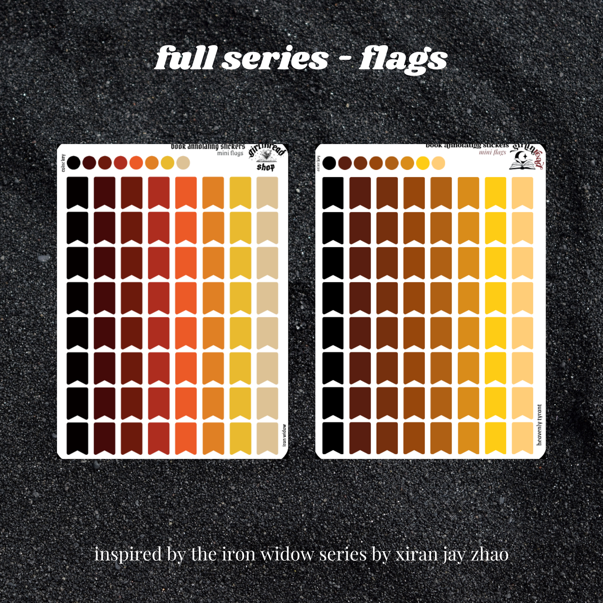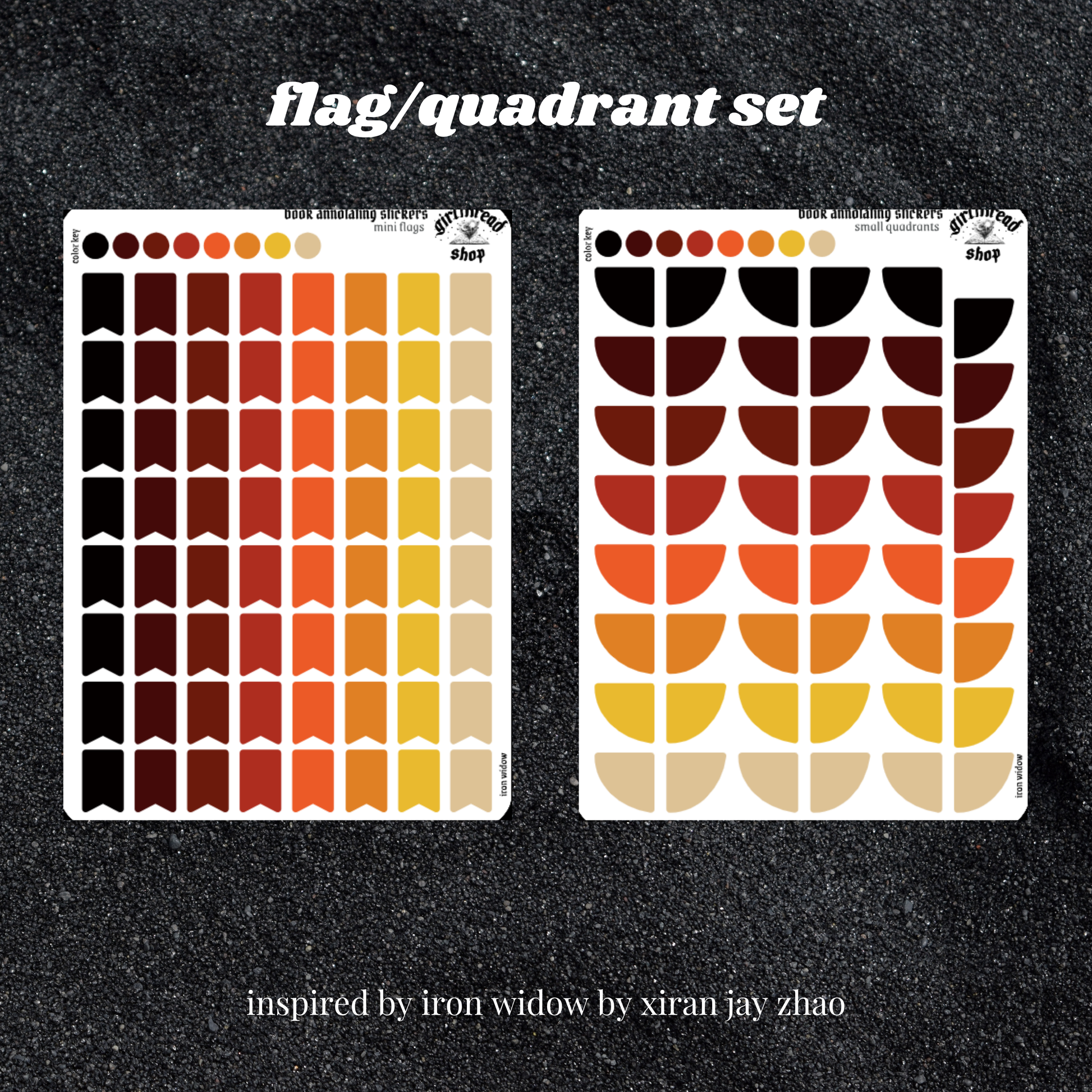book annotating tabs in the color palette inspired by the book cover for the iron widow series! can be placed in the book you're annotating, your planner, your journal, your reading log, etc.!