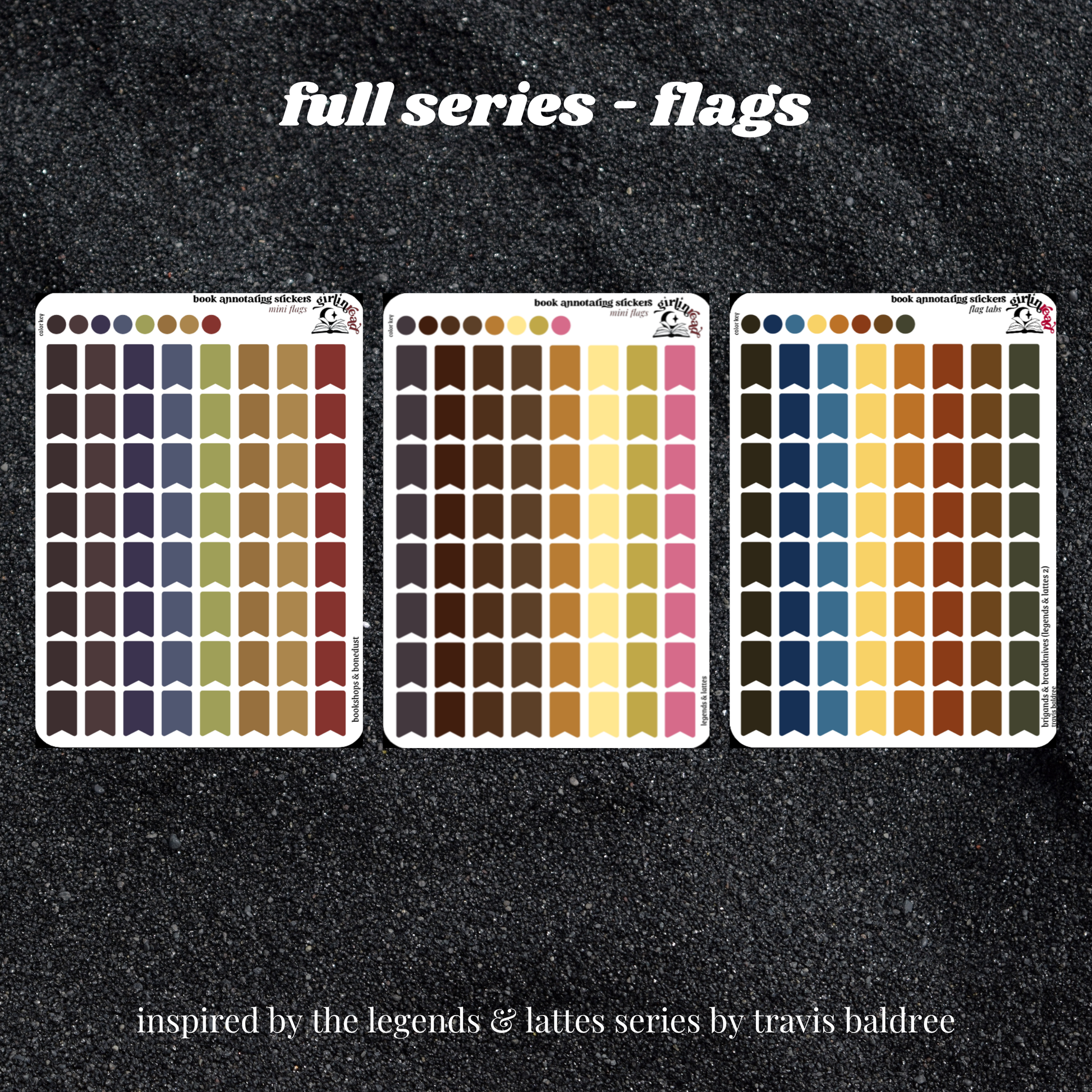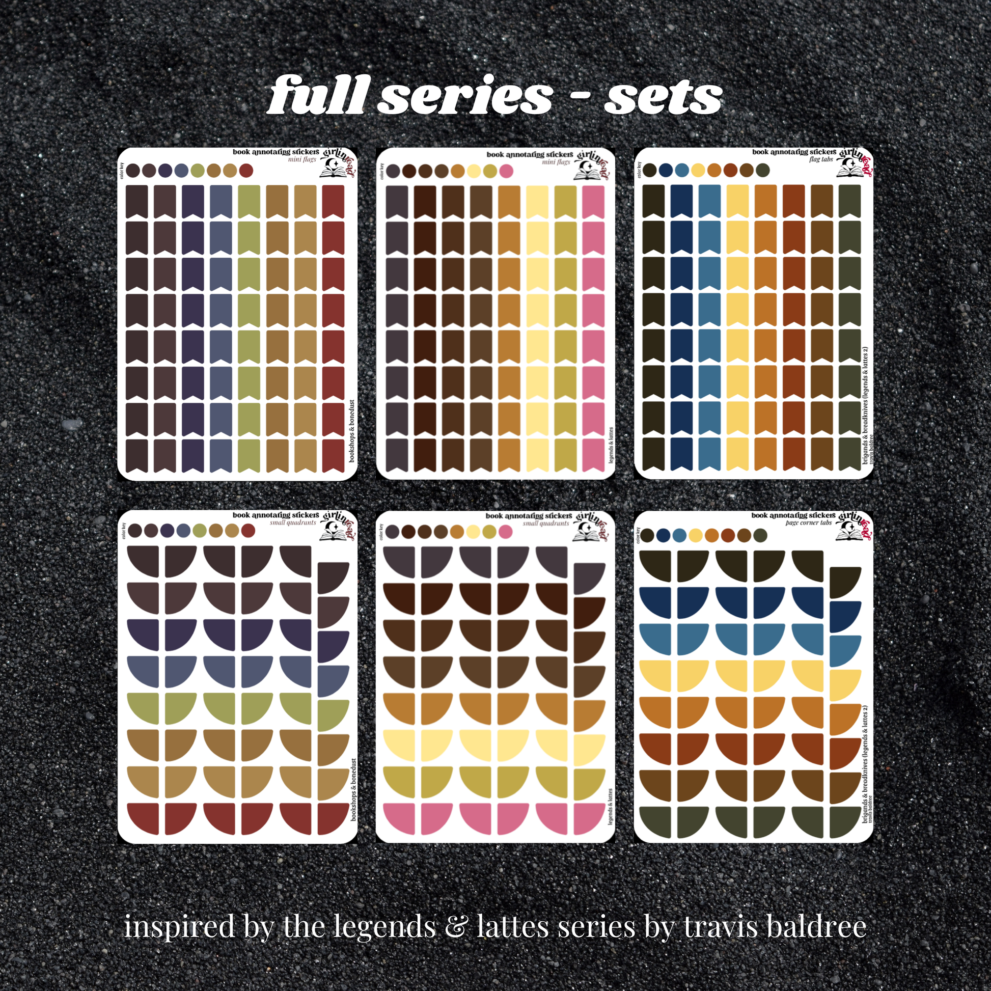 book annotating tabs in the color palette inspired by the book cover for the legends & lattes series! can be placed in the book you're annotating, your planner, your journal, your reading log, etc.!