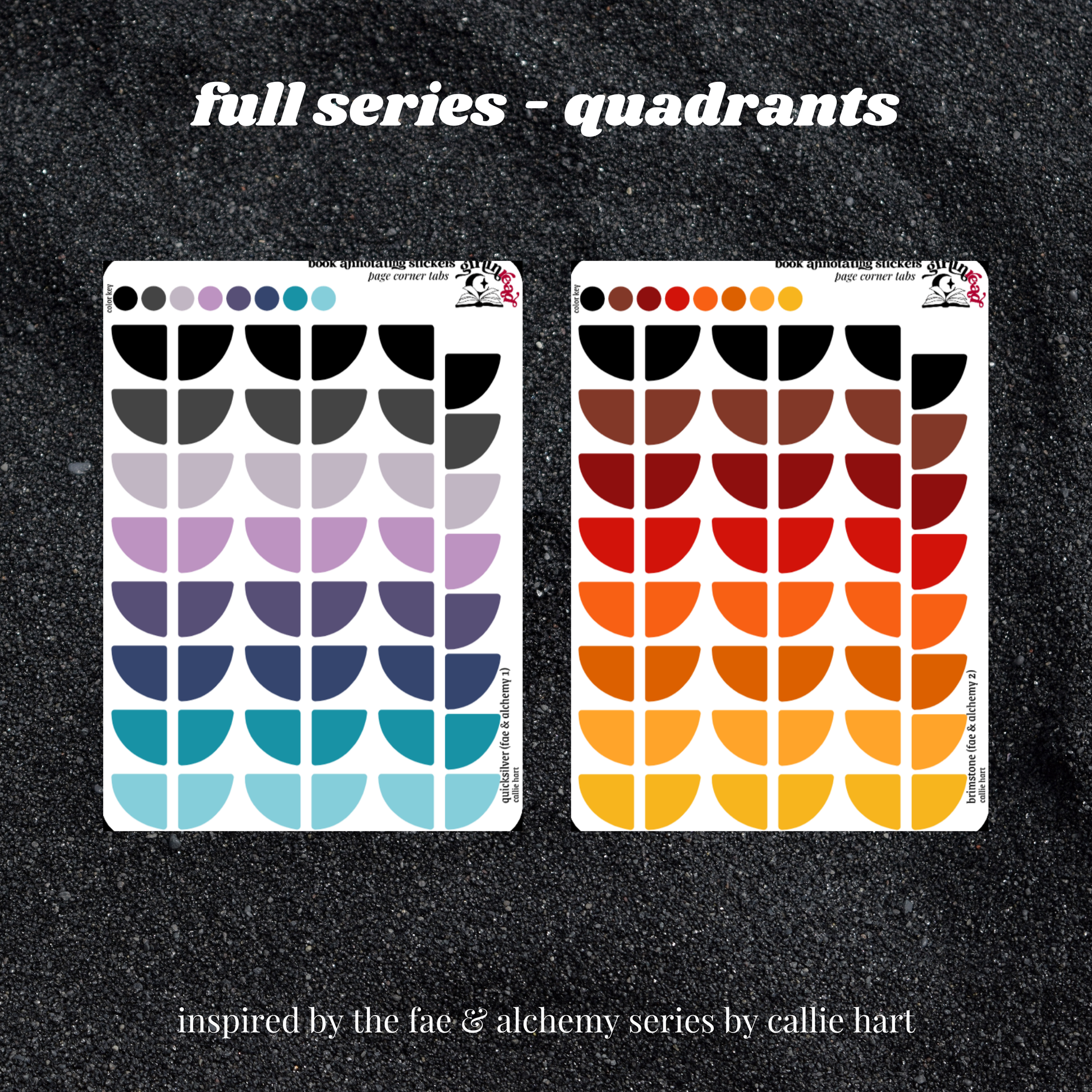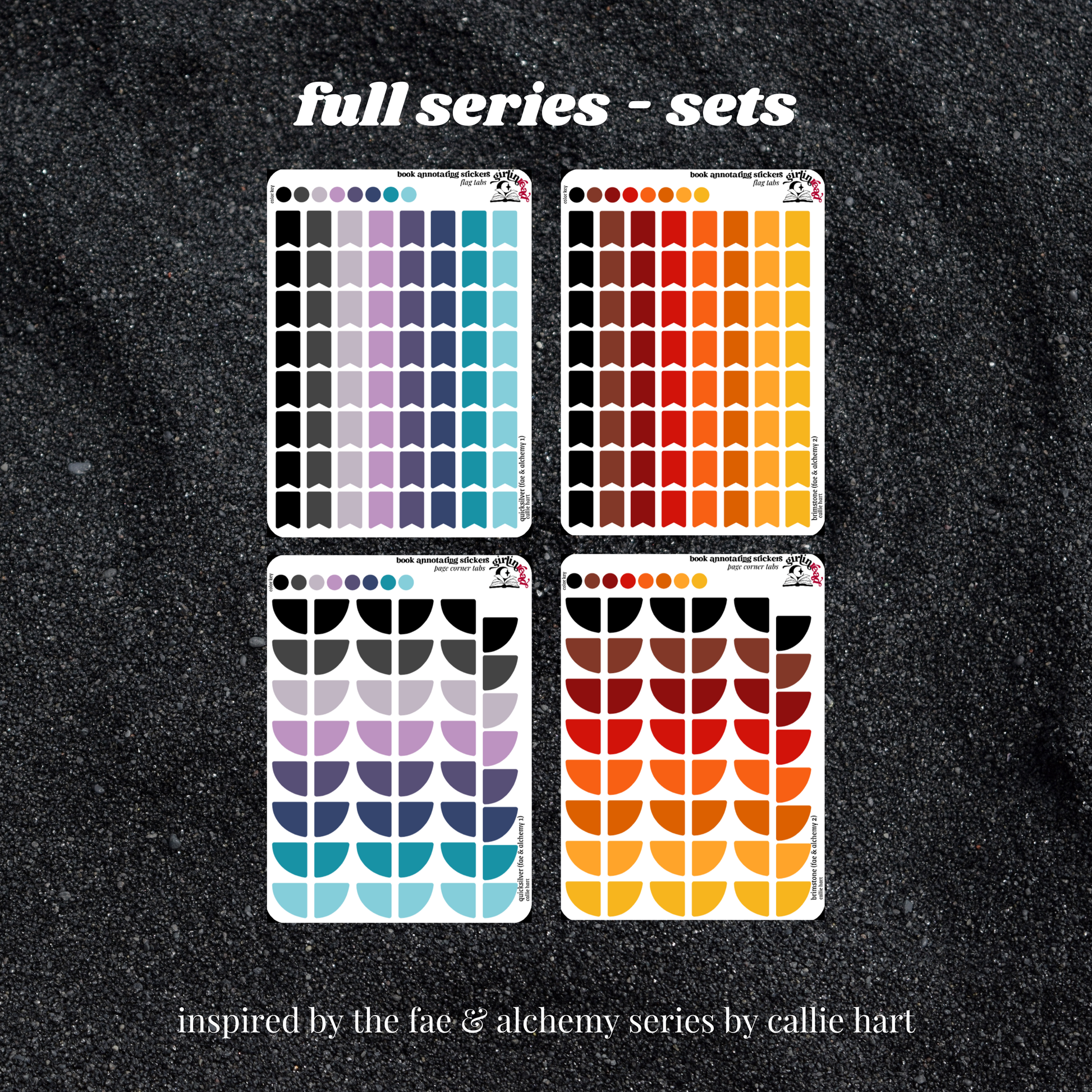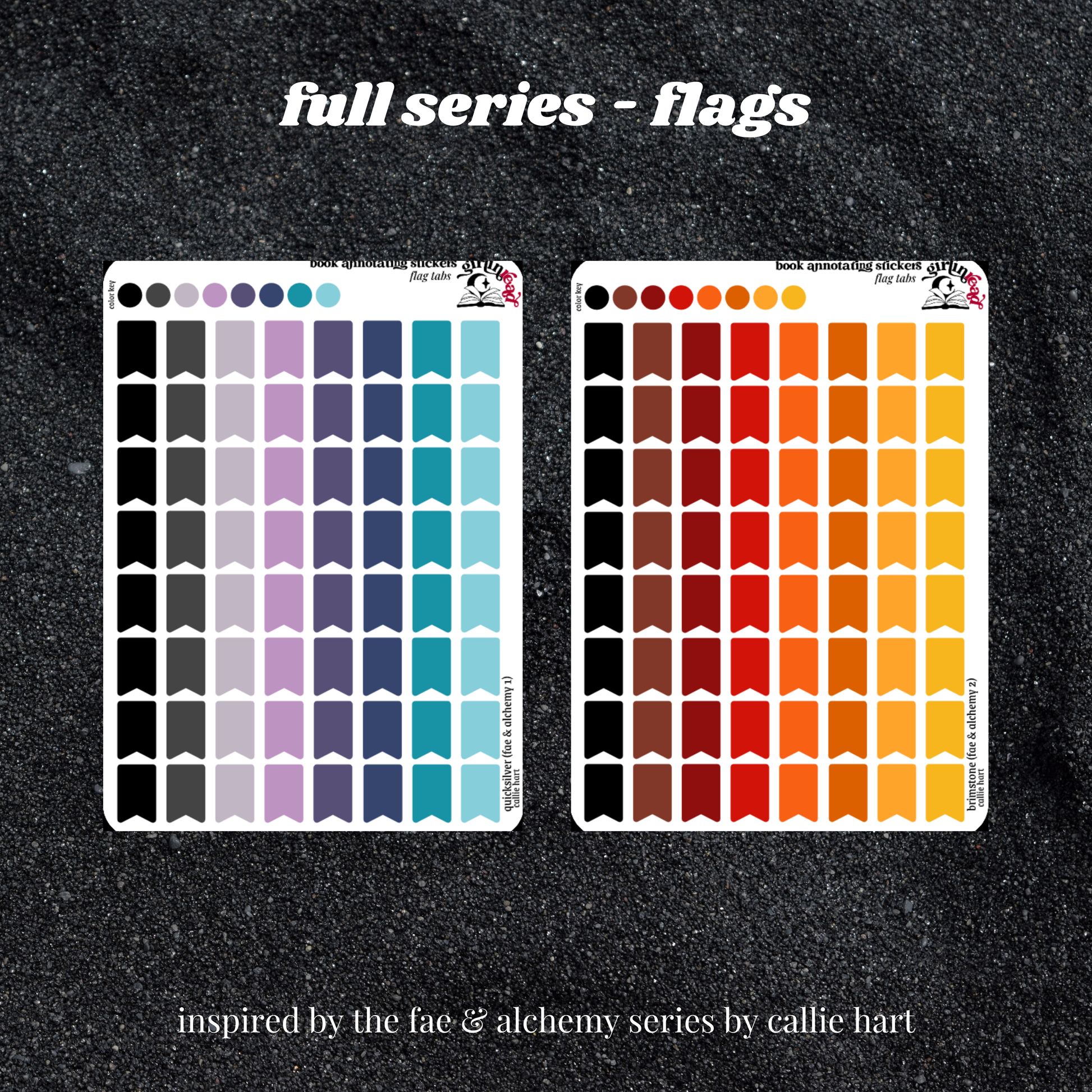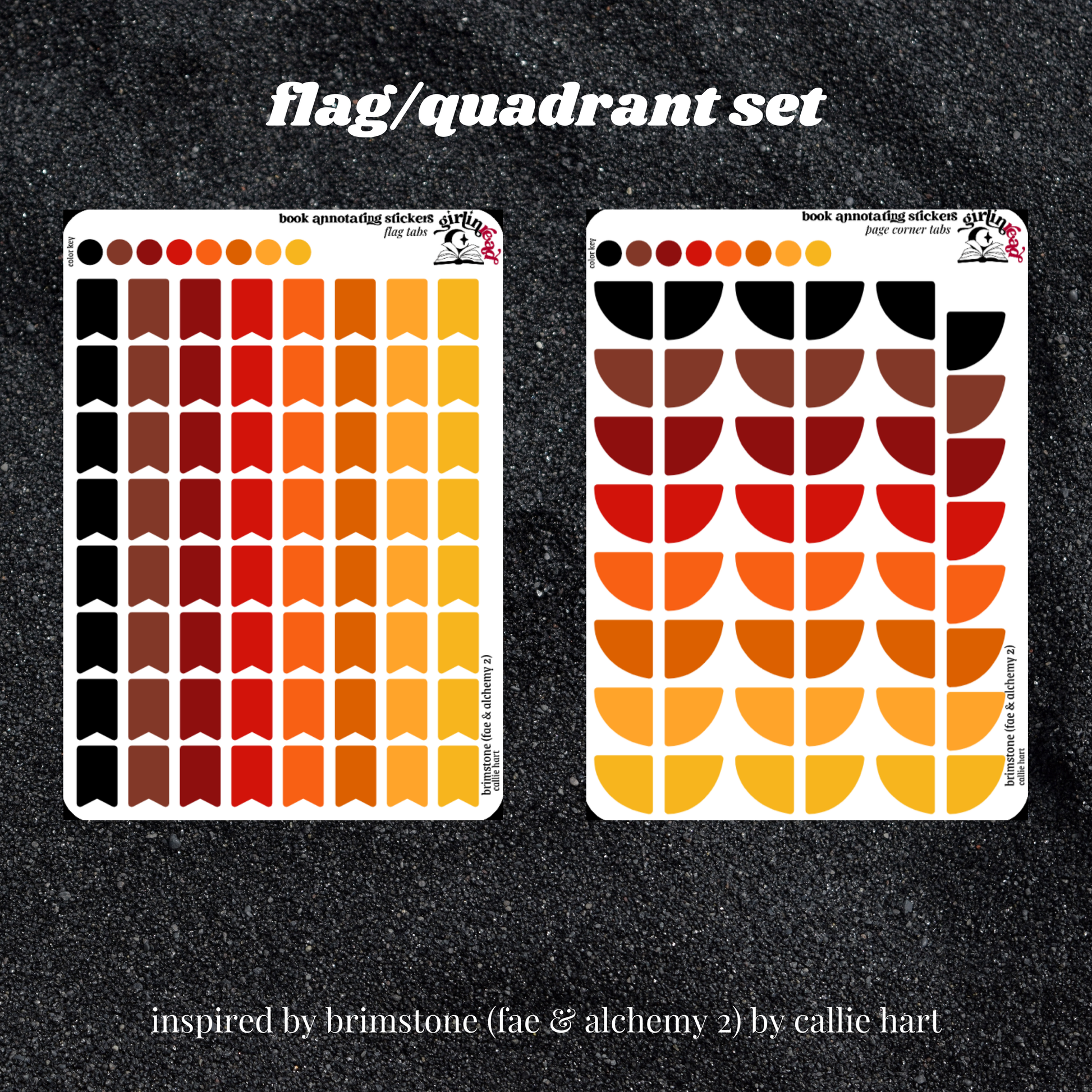book annotating tabs in the color palette inspired by the book cover for the fae & alchemy series (quicksilver, brimstone)! can be placed in the book you're annotating, your planner, your journal, your reading log, etc.!