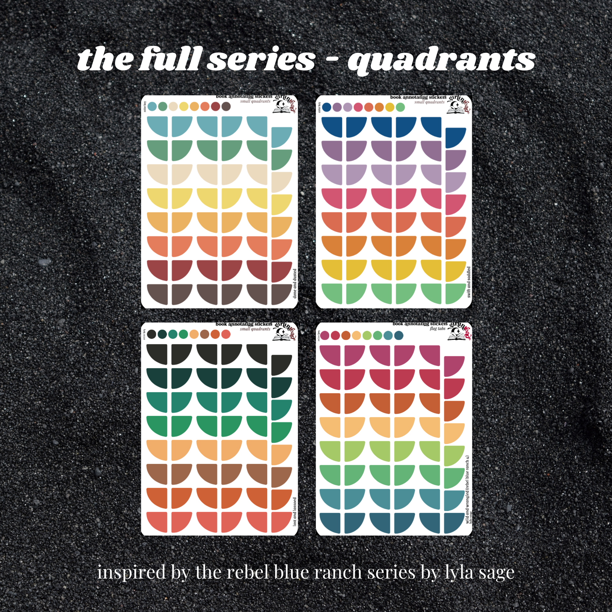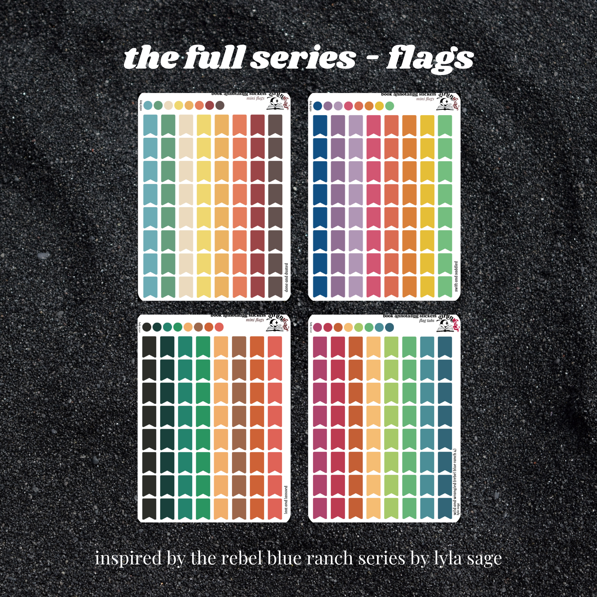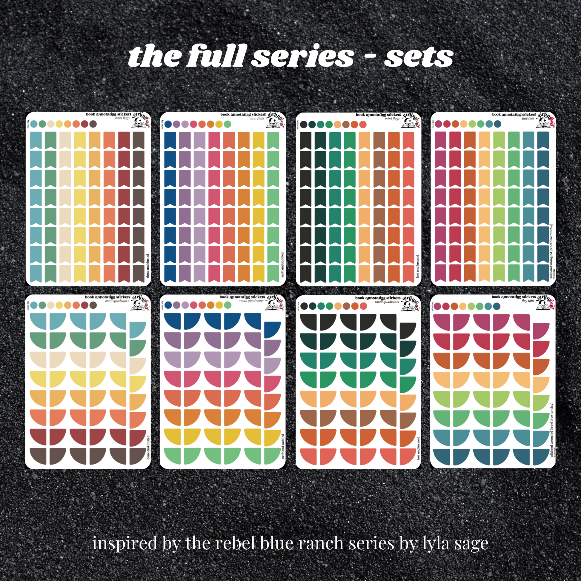 get everything you need to annotate the books in the rebel blue ranch series (done and dusted, swift and saddled, lost and lassoed, wild and wrangled) in the color palettes inspired by each book cover! can be placed in the book you're annotating, your planner, your journal, your reading log, etc.!