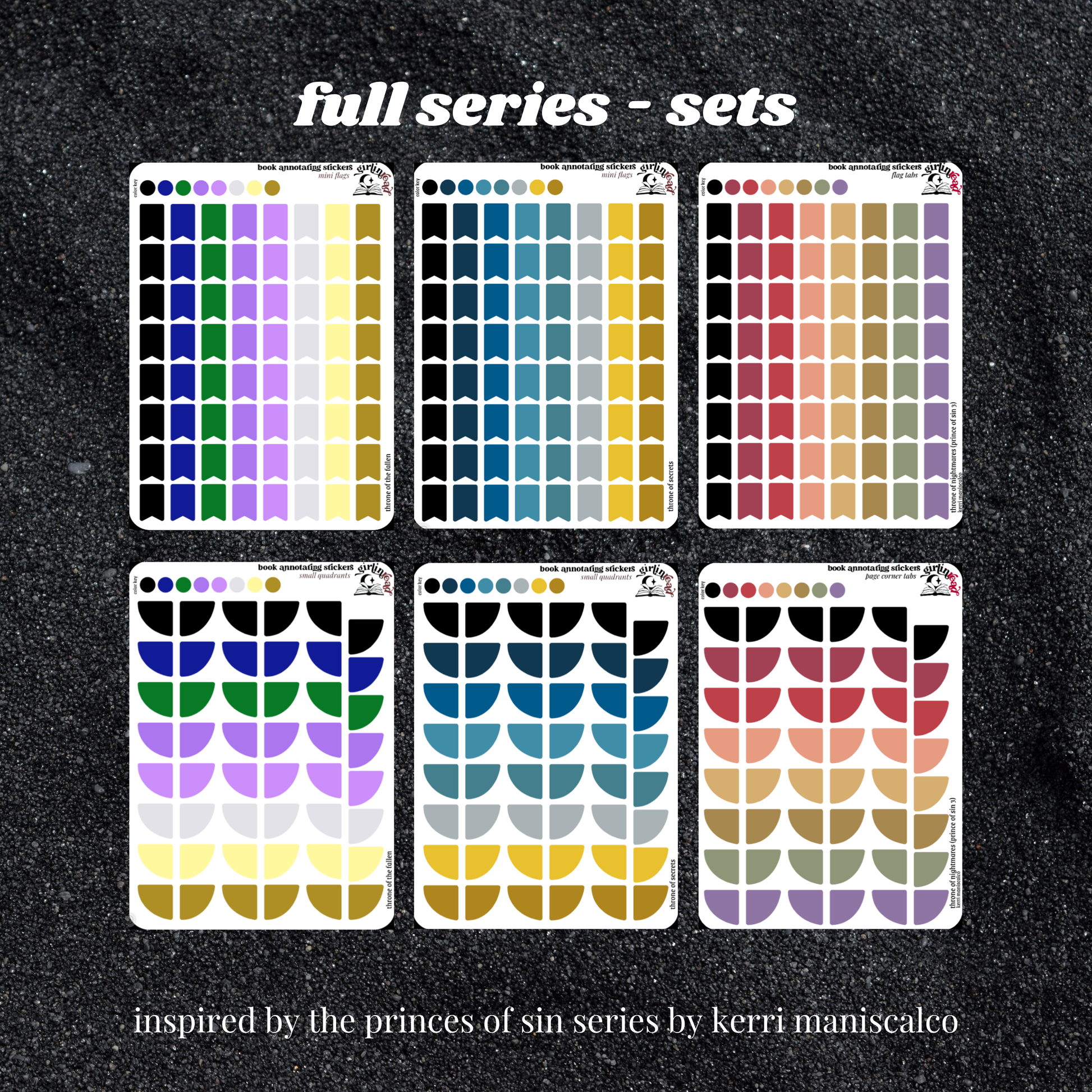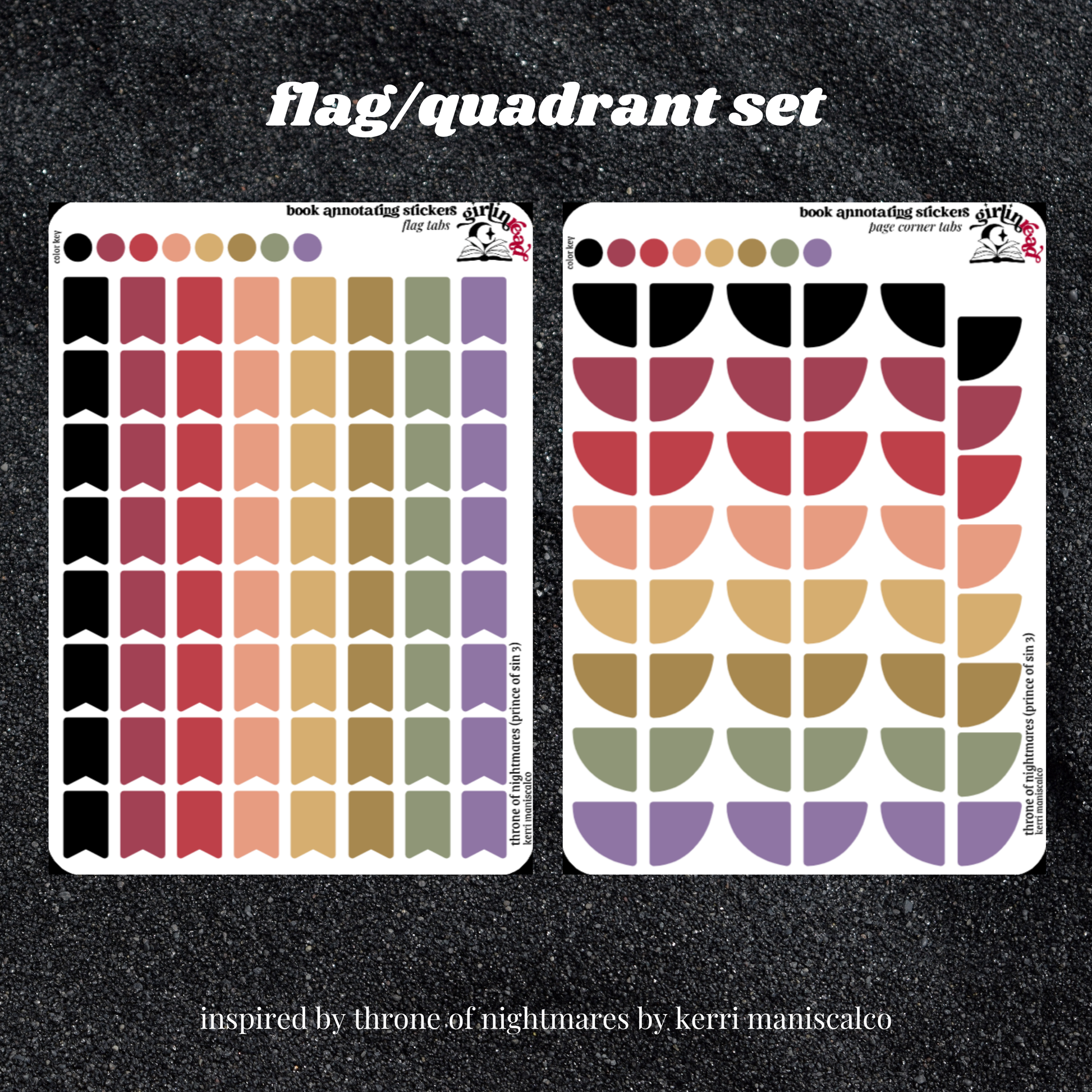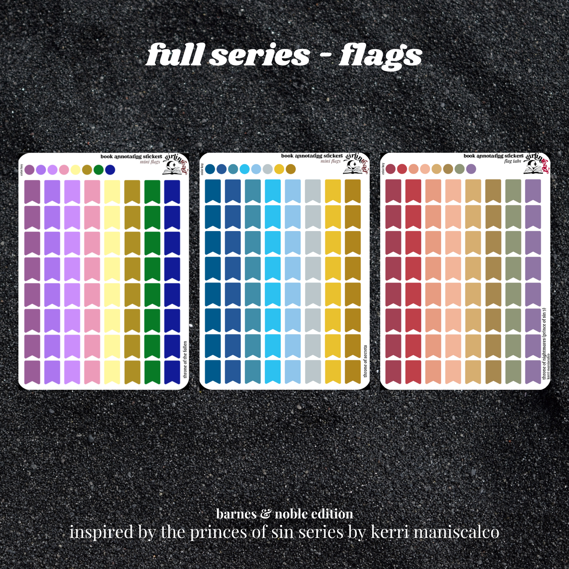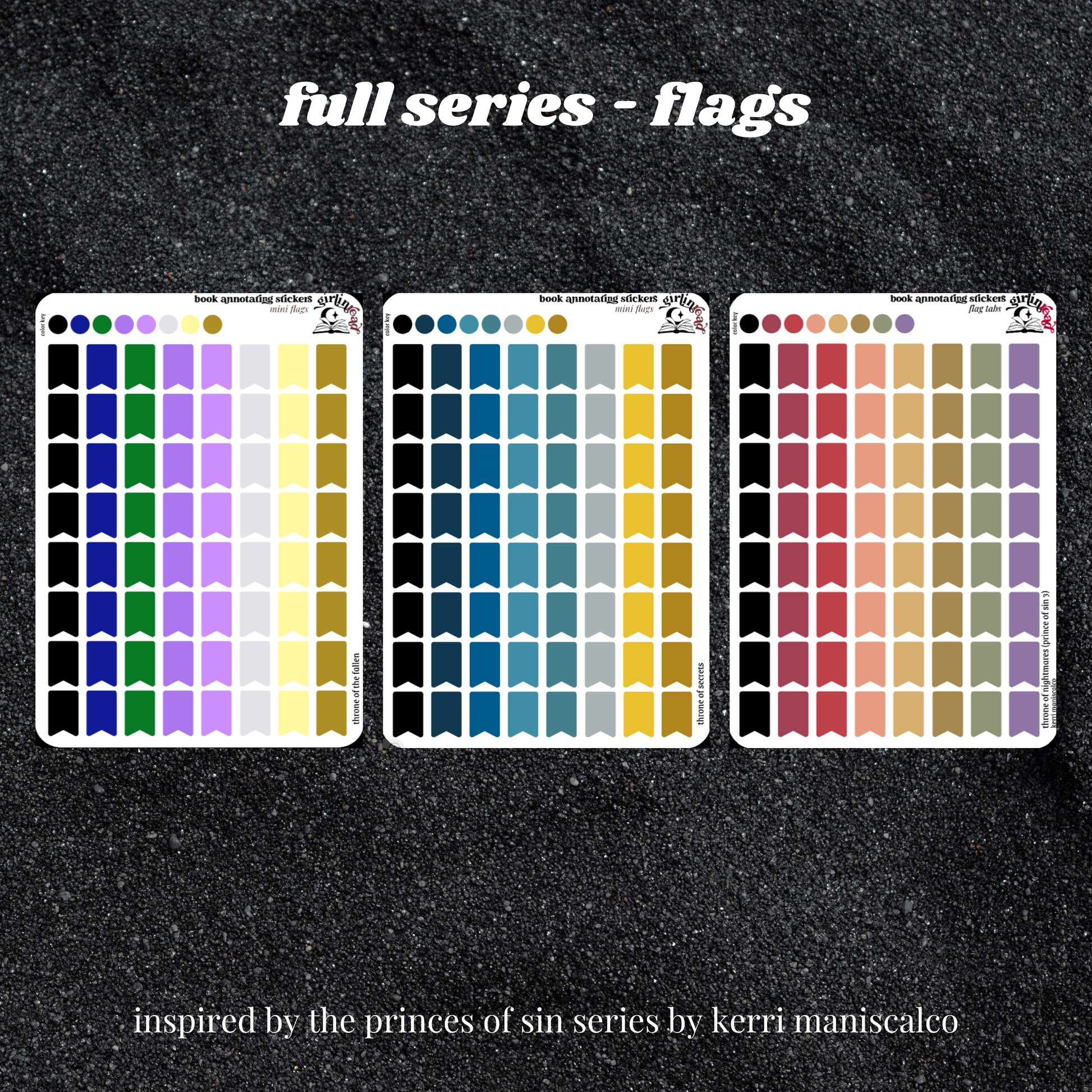 book annotating tabs in the color palette inspired by the book cover for the princes of sin series (throne of the fallen, throne of secrets, throne of nightmares)! can be placed in the book you're annotating, your planner, your journal, your reading log, etc.!