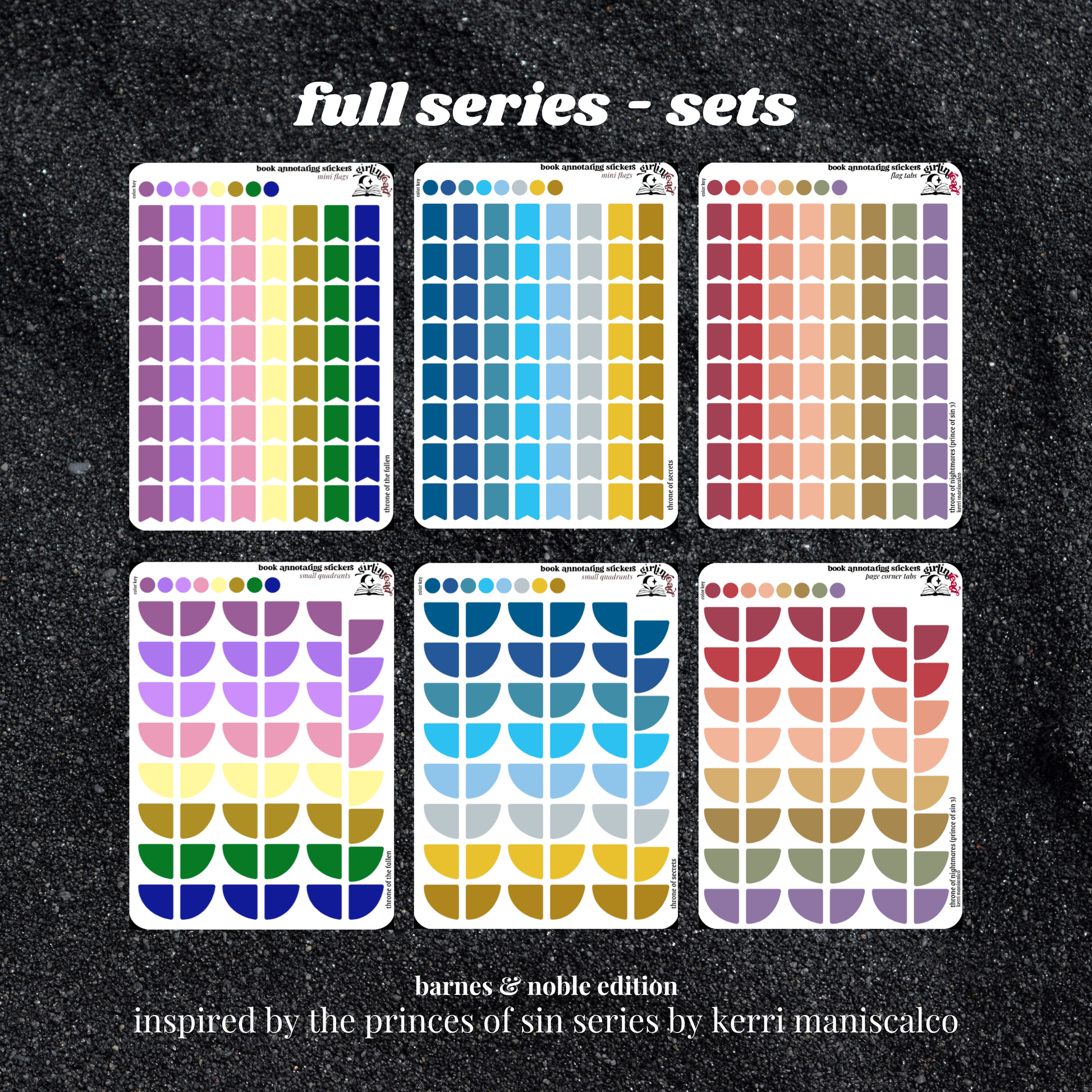 "the full series" comes with all stickers listed for all 3 books for each option.